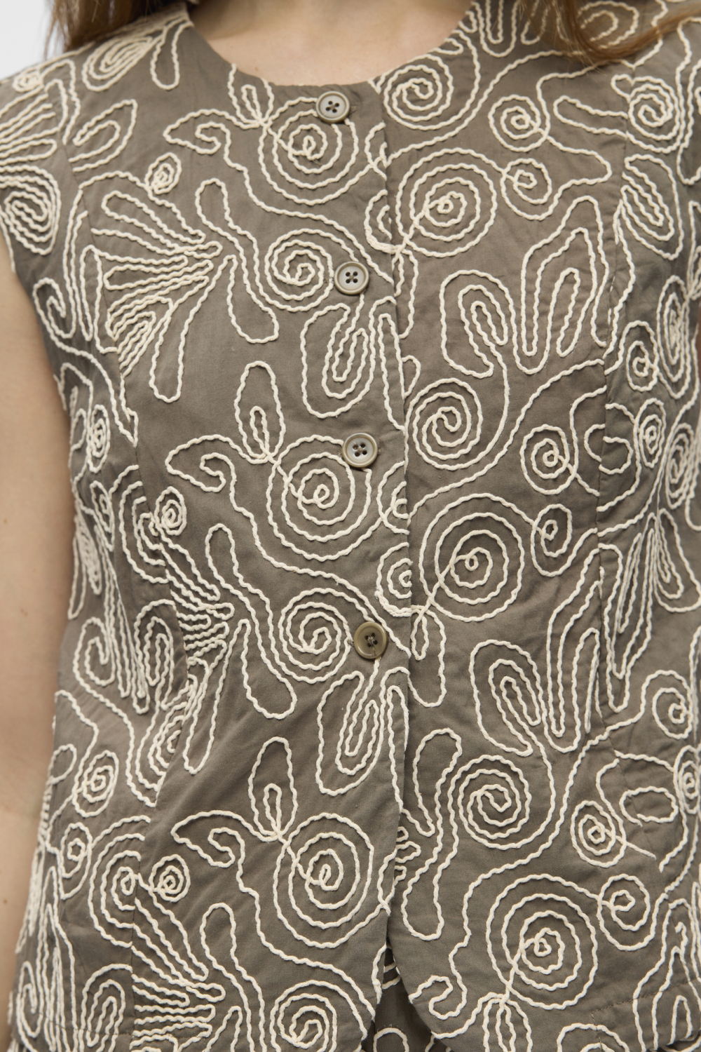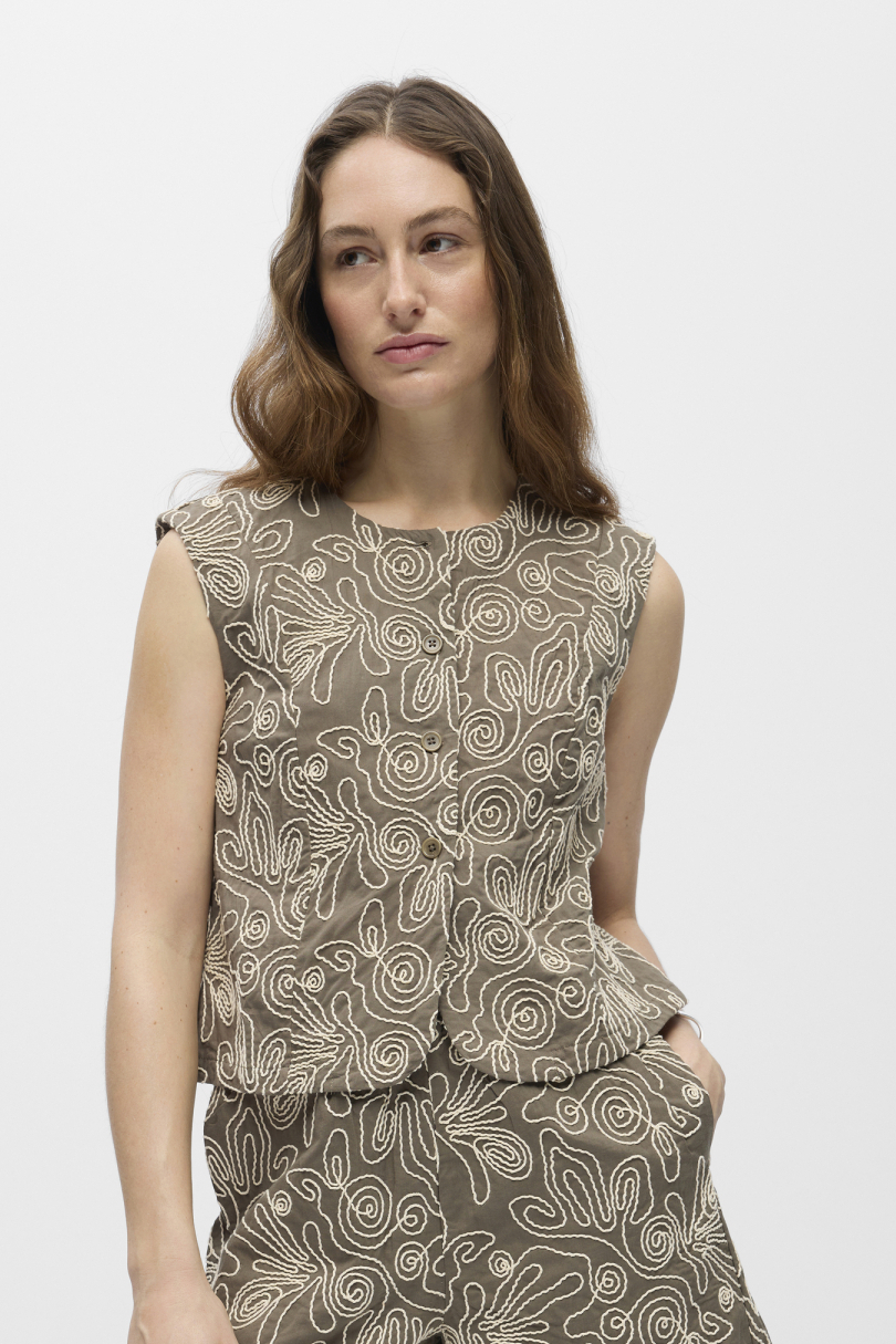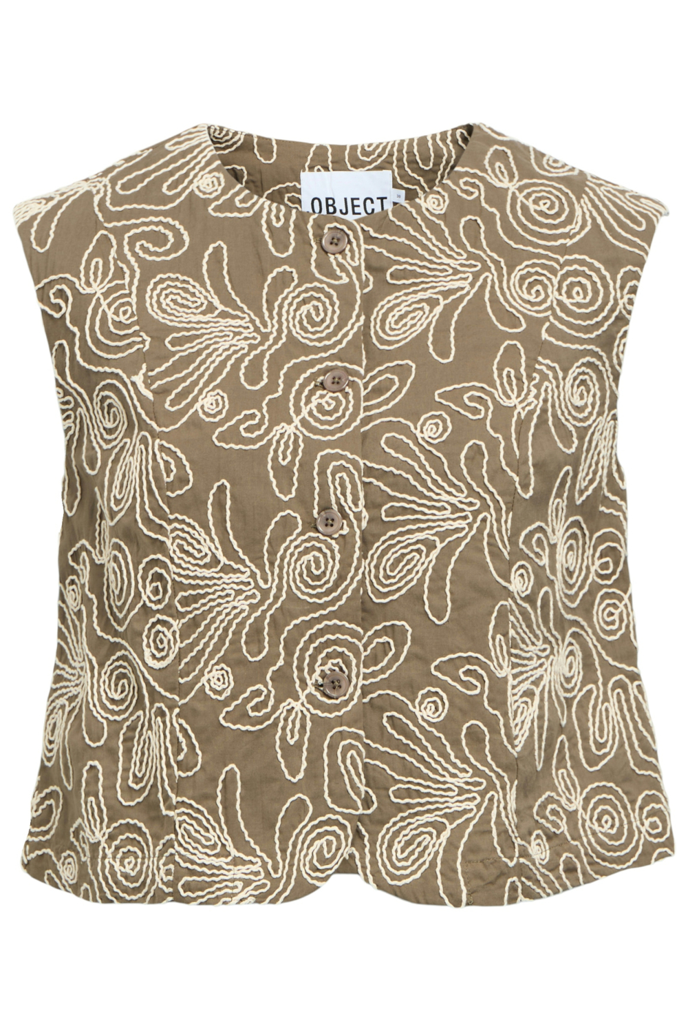 Dit casual gilet van Object is perfect voor de lente en een veelzijdige aanvulling op je garderobe. Het gilet is gemaakt van 80% katoen en 20% gerecycled katoen, waardoor het zowel comfortabel als ecologisch verantwoord is. Het heeft een regular fit pasvorm en een prachtige structuurpatroon, wat zorgt voor een unieke en stijlvolle uitstraling. De knoopsluiting en de ronde halslijn geven het gilet een verfijnde touch, ideaal voor verschillende gelegenheden. Het gilet is mouwloos en heeft een normale lengte, waardoor je het gemakkelijk kunt combineren met zowel casual als meer geklede outfits. Denk aan een dagje uit in de stad of een ontspannen lunch met vrienden. De aardse kleuren en speelse patronen maken het tot een eyecatcher die moeiteloos met andere kledingstukken combineert. Of je nu kiest voor een jeans of een luchtige rok, met dit gilet van Object maak je altijd een stijlvolle indruk.