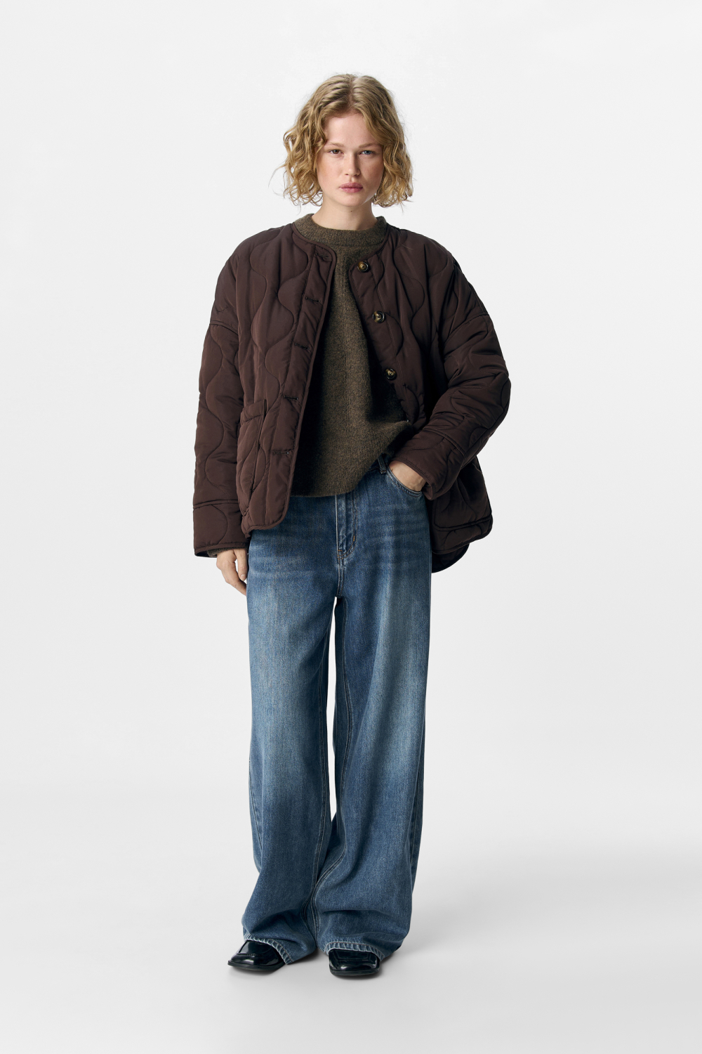 Deze casual damesjas van Object biedt jou een perfecte combinatie van stijl en comfort. Uitgevoerd in de warme Java-kleur, heeft de jas een unieke structuurpatroon die subtiel opvalt. De ronde hals en lange mouwen zorgen voor een relaxed en toch doordacht ontwerp, terwijl de knoopsluiting een klassieke touch toevoegt. De jas is gemaakt van 100% gerecycled polyester, wat niet alleen comfortabel aanvoelt maar ook een duurzame keuze is. Met zijn regular fit pasvorm en gewatteerde polyester voering, is deze jas ideaal voor dagelijks gebruik het hele jaar door. De handige steekzakken voegen praktische opbergruimte toe zonder afbreuk te doen aan de esthetiek. Combineer hem moeiteloos met een jeans voor een casual dagje uit, of draag hem over een jurk voor een meer gestylede look. Of je nu op weg bent naar een relaxte brunch of een wandeling in het park, deze jas houdt je stijlvol warm. Meer informatie: De totale lengte is 69 cm bij maat 36.