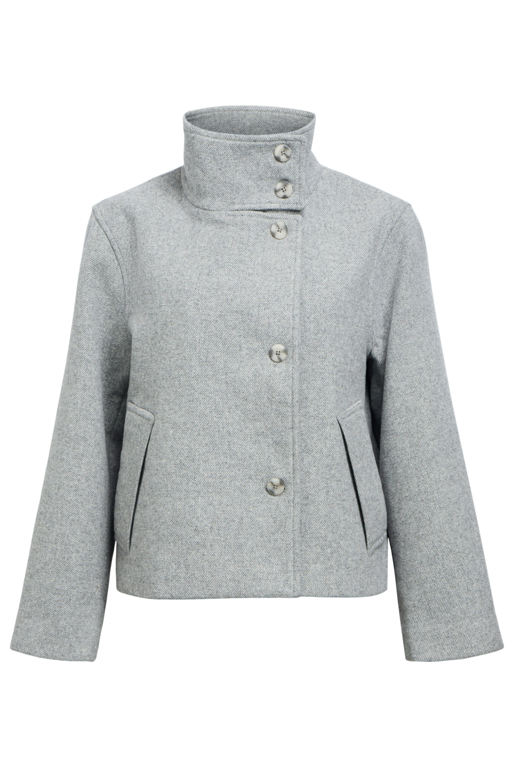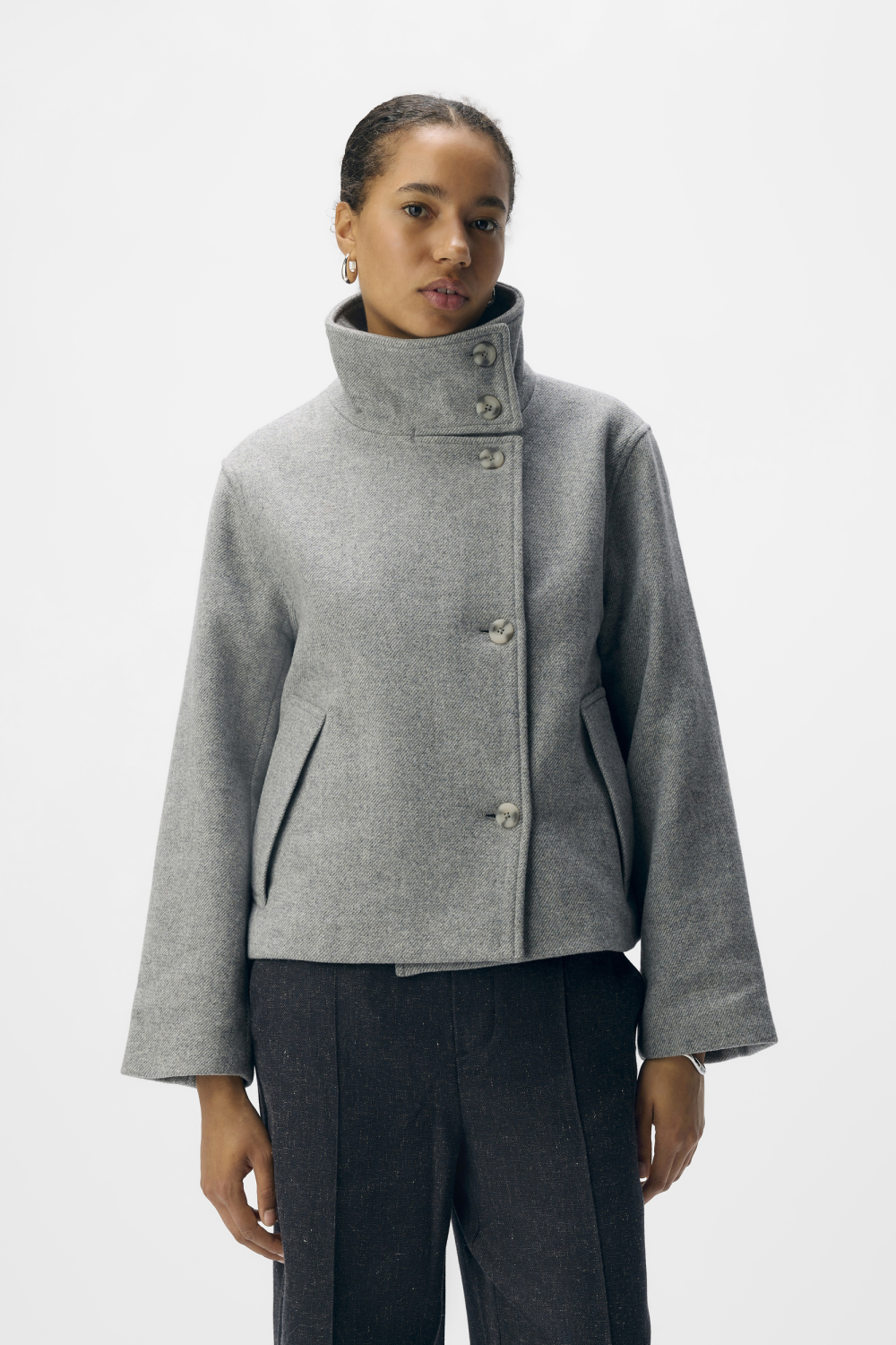 Deze medium grijze melange jas van Object is een verfijnde keuze voor de wintermaanden. Met een high neck en elegante knoopsluiting combineert deze jas stijl met functionaliteit. De regular fit zorgt ervoor dat je je comfortabel kunt bewegen, terwijl de lange mouwen extra warmte bieden. Door de paspelzakken behoudt de jas een strakke uitstraling, perfect voor een casual dagje uit of een informele bijeenkomst. De kortere lengte van de jas maakt hem veelzijdig en ideaal om te combineren met zowel broeken als rokken. De polyester voering houdt je warm op koude dagen, zonder in te boeten aan stijl. Dankzij het eenvoudige ontwerp met een moderne twist, doet deze jas het goed in verschillende settings. Of je nu een wandeling maakt in de stad of gezellig een kop koffie gaat drinken, deze jas is een stijlvolle metgezel die indruk maakt.