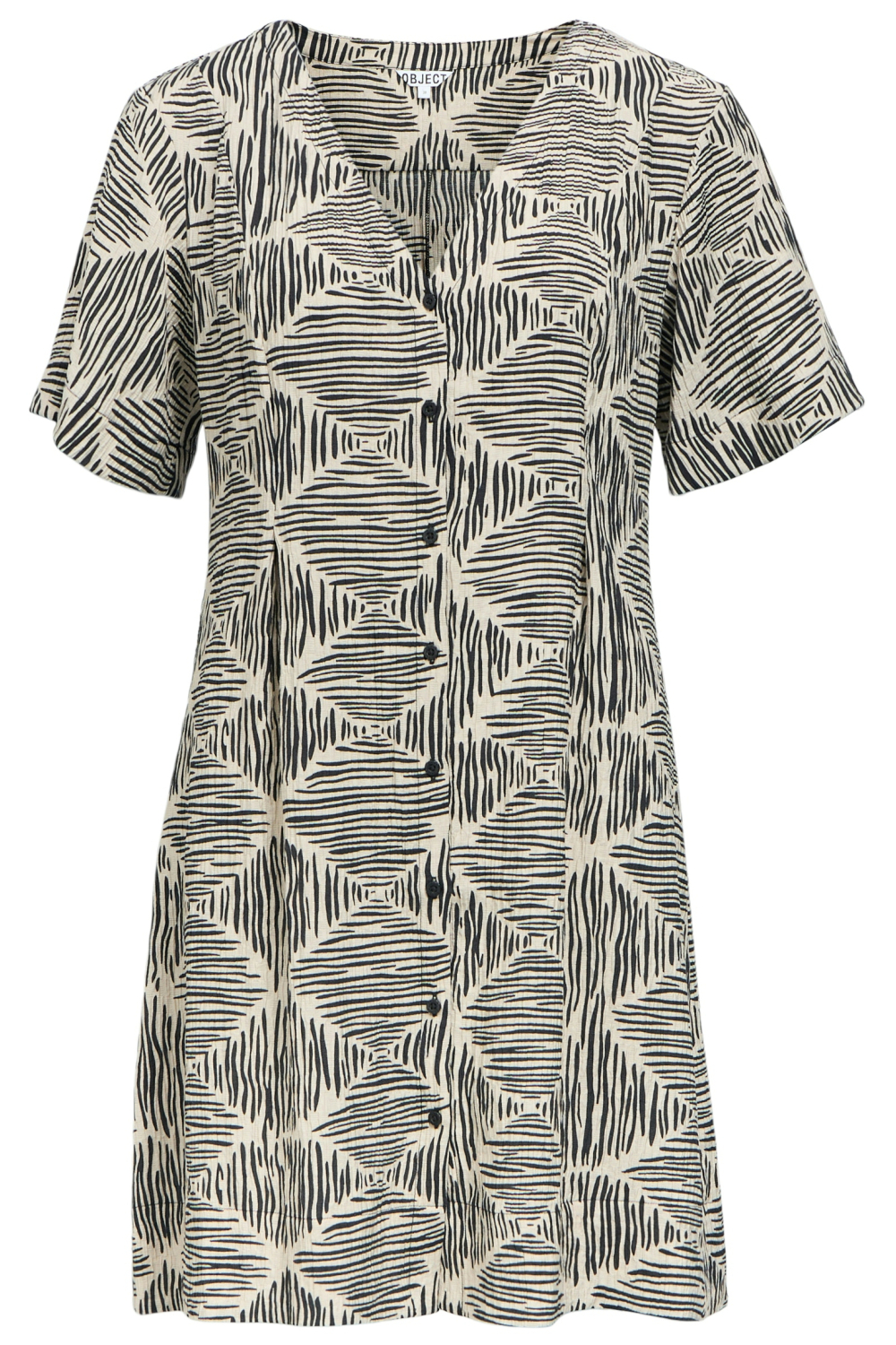 Deze casual jurk van Object is een veelzijdige aanvulling voor je lente garderobe. Het grafische patroon biedt een eigentijdse uitstraling, perfect voor zowel een ontspannen dagje uit als een informele bijeenkomst. De halflange lengte en de subtiele V-hals dragen bij aan een flatterend silhouet. Dit exemplaar, gemaakt van 80% viscose en 20% polyamide, voelt licht en comfortabel aan op je huid, wat het ideaal maakt voor warmere dagen. De jurk heeft een regular pasvorm en korte mouwen, waardoor het eenvoudig draagbaar is en een aangenaam comfort biedt gedurende de dag. Let op de knoopsluiting, die een extra detail toevoegt aan het ontwerp en het omkleden eenvoudig maakt. Of je nu de stad ingaat of een brunch met vrienden hebt gepland, met deze Object jurk ben je verzekerd van een moeiteloze en stijlvolle look die bij diverse gelegenheden past. Meer informatie: De totale lengte is 89 cm bij maat 36.