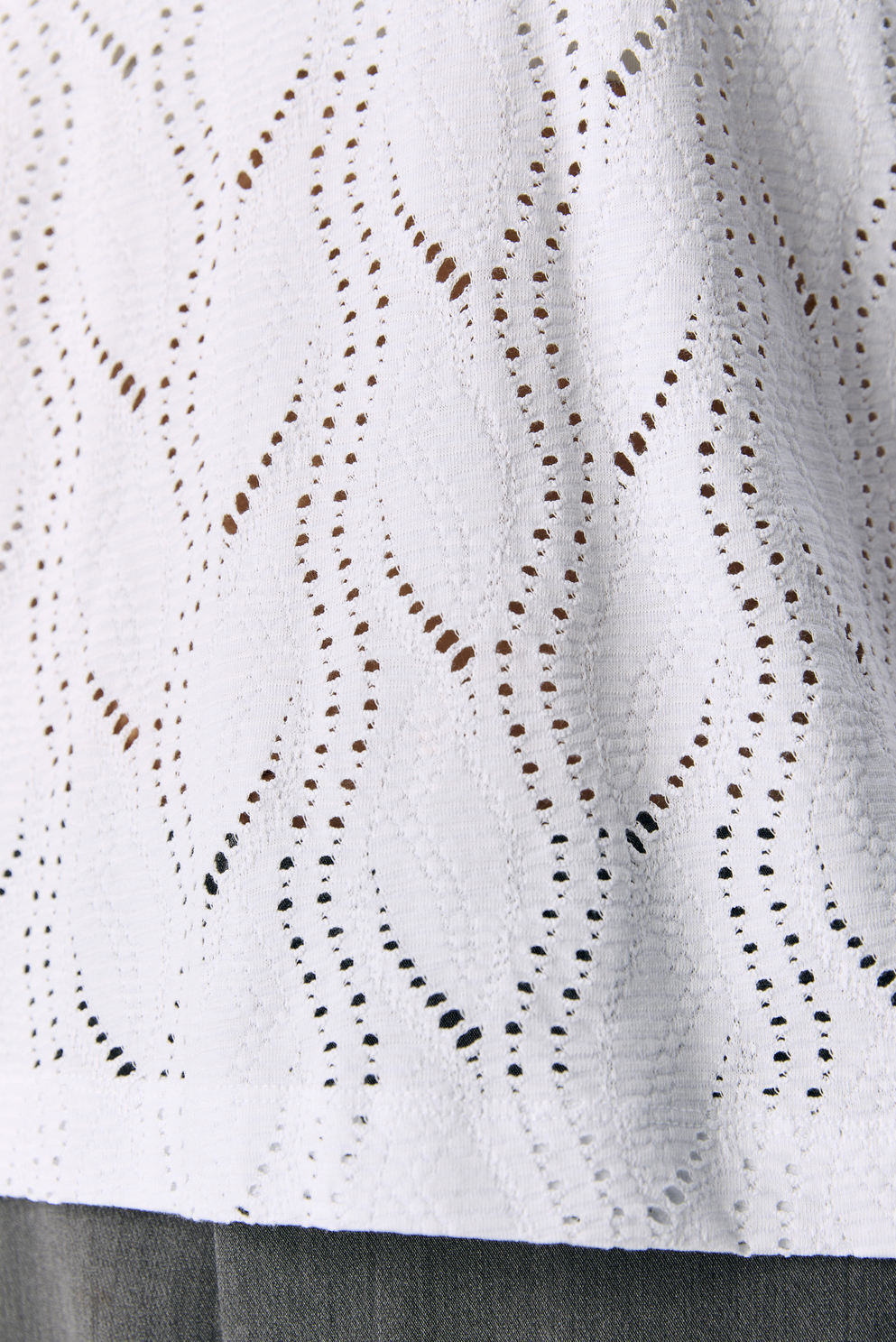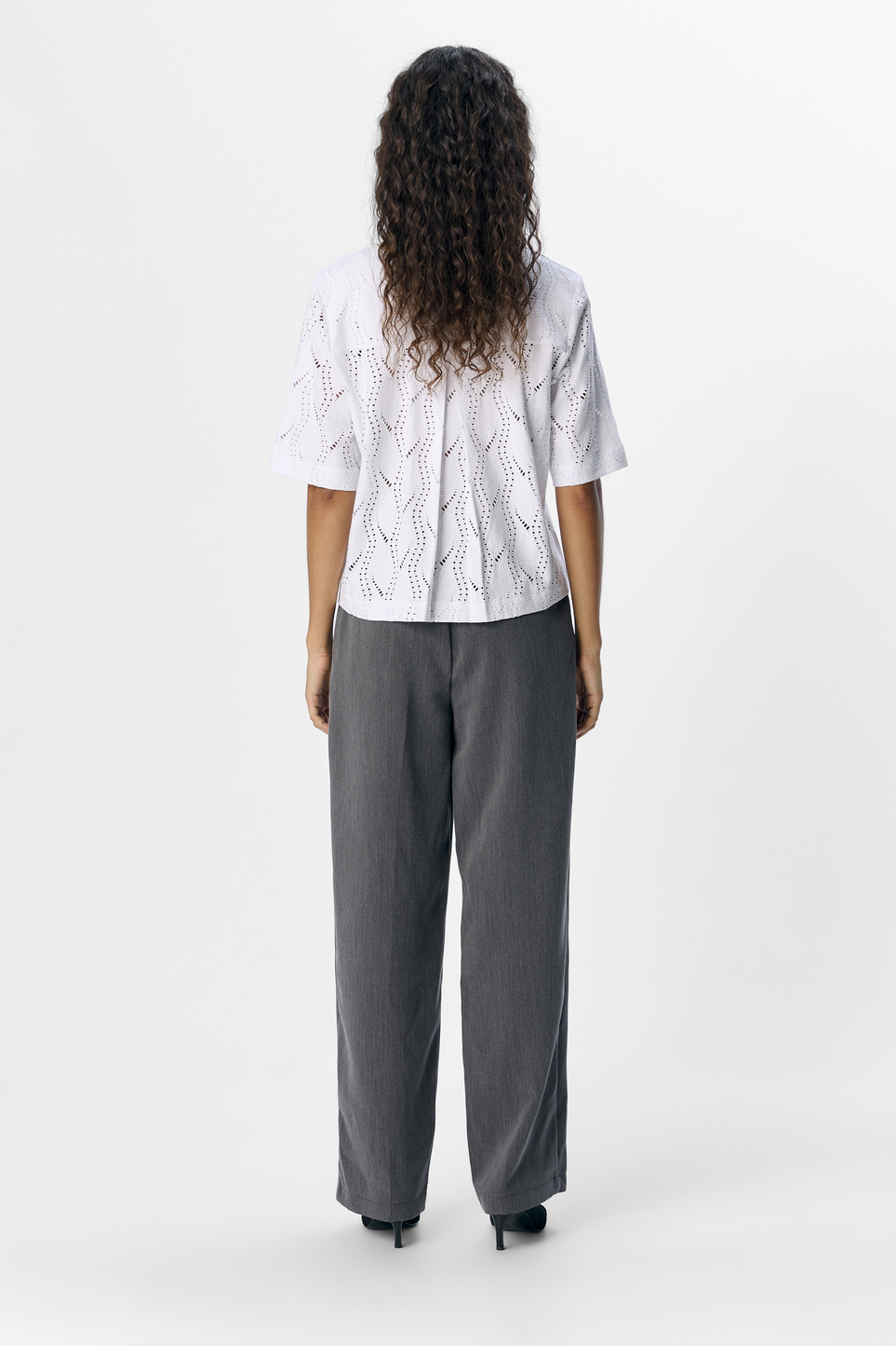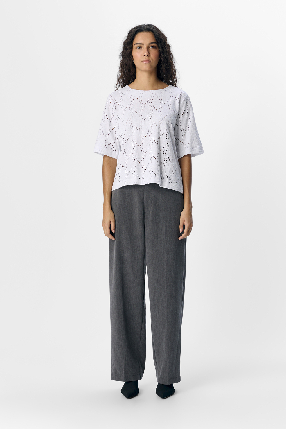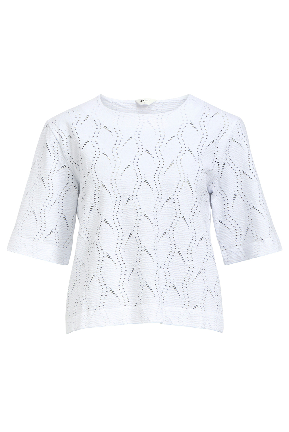 Dit vrouwelijke T-shirt van Object is een prachtige aanvulling op je casual garderobe. Het heeft een relaxed fit en is vervaardigd van 95% biologisch katoen en 5% elastaan, wat zorgt voor een aangenaam draagcomfort. De ronde hals en korte mouwen geven het shirt een typische casual uitstraling. De prachtige kanten patroon voegt net dat beetje extra flair toe, waardoor het geschikt is voor zowel een dagje uit als een ontspannen avondje thuis. Het T-shirt heeft een speelse, maar subtiele structuur, waardoor het zich onderscheidt van basisstukken in je kast. De witte kleur maakt het gemakkelijk te combineren met diverse outfits. Draag het bijvoorbeeld met een lichte jeans voor een frisse look of kies voor een nette pantalon voor een iets formelere gelegenheid. Dankzij de normale lengte en het luchtige materiaal is het ideaal voor dagelijks gebruik, ongeacht het seizoen.