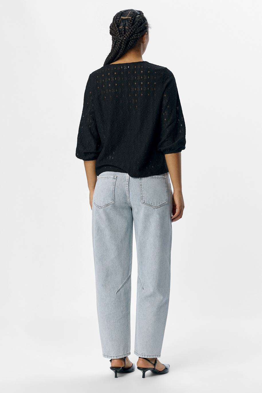 Dit casual zwarte T-shirt van Object is een stijlvolle keuze voor de winter. Met een regular fit pasvorm is het ontworpen om comfortabel en flatterend te vallen. De 3/4 mouwen en ronde hals maken het veelzijdig voor verschillende seizoenen. Het ajourpatroon geeft een subtiel detail en maakt het T-shirt uniek en modieus. Het is gemaakt van 98% gerecycled polyester en 2% elastaan, waardoor het niet alleen duurzaam is, maar ook zacht en rekbaar. Dit T-shirt past perfect bij zowel een jeans voor een alledaagse look als bij een rok voor een meer geklede gelegenheid. De normale lengte maakt het een veelzijdig stuk in je garderobe, gemakkelijk te combineren en comfortabel in alle situaties. Of je nu een dag op kantoor hebt of een avondje uit gaat, dit T-shirt van Object biedt een elegante en toch ontspannen uitstraling die je look compleet maakt.