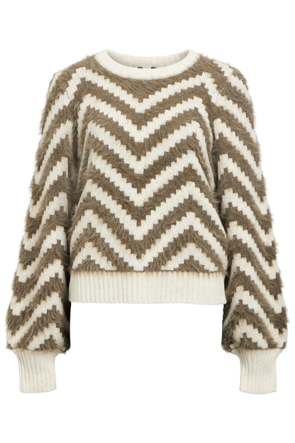 Deze prachtige trui van Object mag niet ontbreken in je wintergarderobe. Het kledingstuk heeft een regular fit pasvorm en is ontworpen met een opvallend zigzagpatroon, wat voor een speelse en opvallende uitstraling zorgt. De trui heeft een ronde hals en is voorzien van lange mouwen, waardoor het een comfortabele keuze is tijdens de koudere maanden. Het luxueuze breisel heeft een zachte textuur, ideaal voor een warme en stijlvolle look. Met zijn neutrale kleurenpalet is deze trui van Object makkelijk te combineren met diverse outfits. Draag het bijvoorbeeld boven een stijlvolle rok voor een meer geklede look, of combineer het met je favoriete jeans voor een ontspannen, casual setting. Of je nu een drukke werkdag voor de boeg hebt of een ontspannen avond thuis plant, deze knitwear biedt een perfecte mix van comfort en stijl.