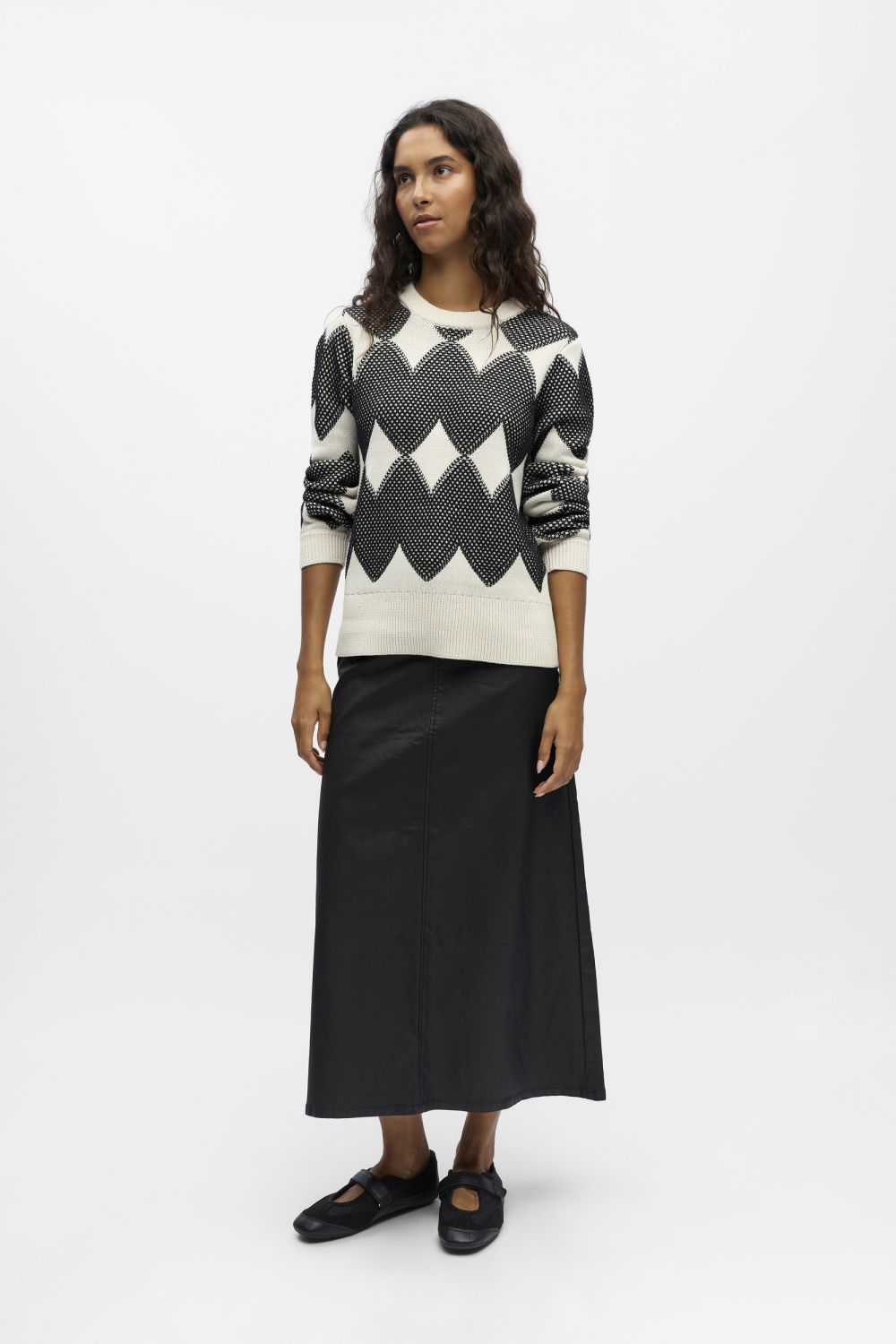 Deze stijlvolle trui van Object in White Sand/BLACK is een echte aanvulling voor je garderobe deze winter. De trui valt op door zijn opvallende structuurpatroon, wat voor een speels en eigentijds effect zorgt. Met een ronde hals en een regular pasvorm biedt de trui zowel comfort als stijl. Dankzij het gebruik van 100% katoen voelt het materiaal zacht aan op de huid, ideaal voor koudere dagen. De lange mouw en normale lengte maken deze trui geschikt voor uiteenlopende gelegenheden. Of je nu een dag op kantoor hebt of een informele bijeenkomst bijwoont, je ziet er altijd verzorgd uit. Combineer de trui eenvoudig met een jeans voor een casual look of met een rok voor een nettere outfit. Deze duurzame keuze van Object past perfect in een moderne garderobe en zorgt ervoor dat je de hele winter stijlvol voor de dag komt.