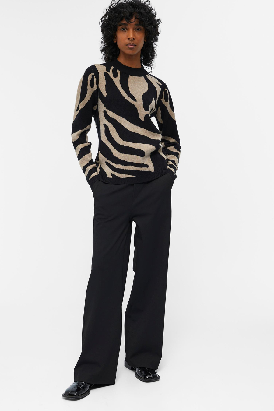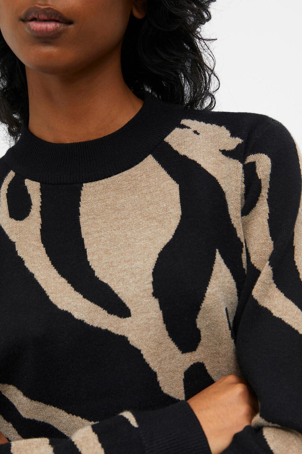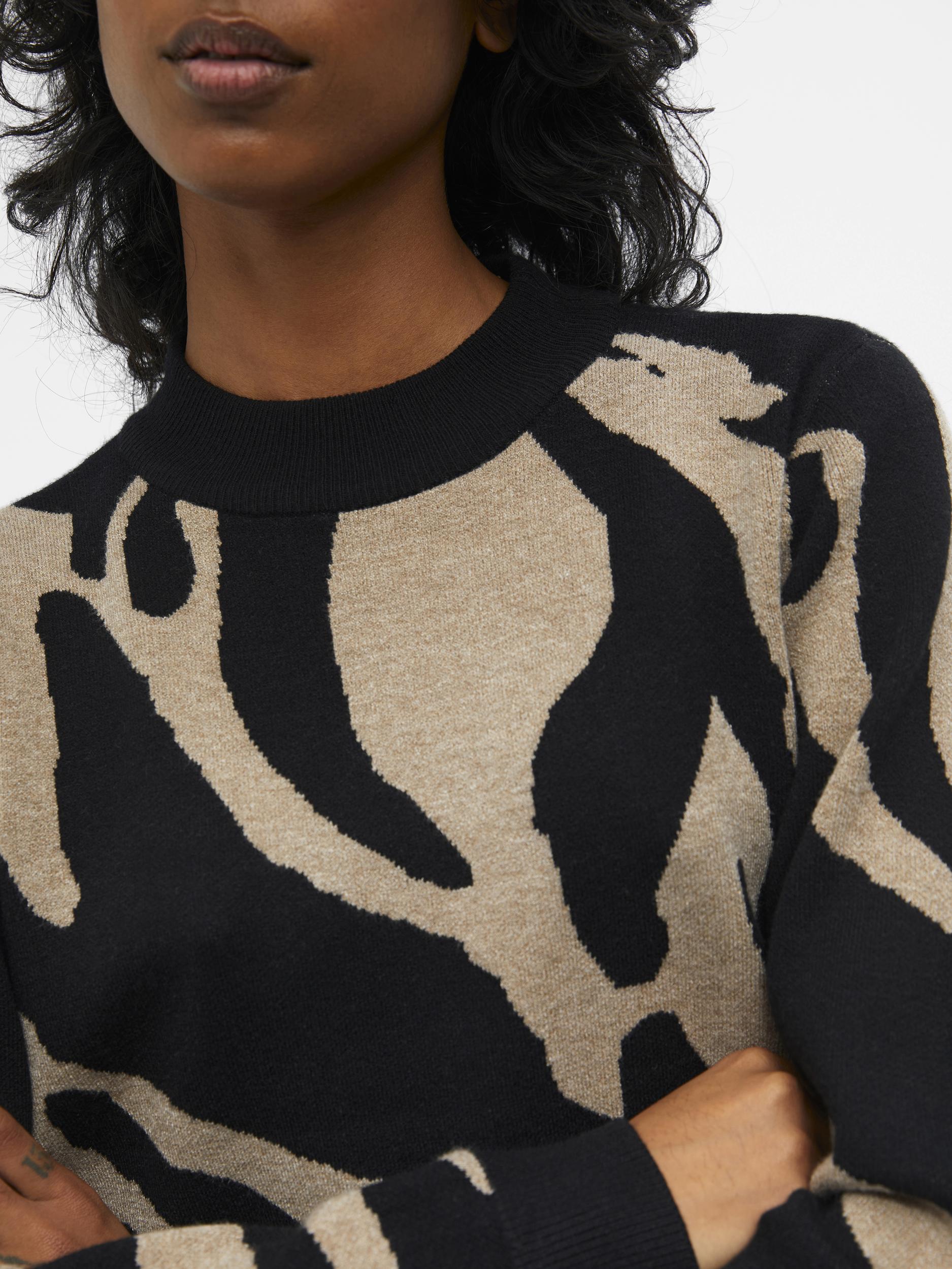 Gebreide trui van Object. Dit item is voorzien van een rib kraag en heeft een allover grafisch patroon. De trui is afgewerkt met rib gebreide boorden.