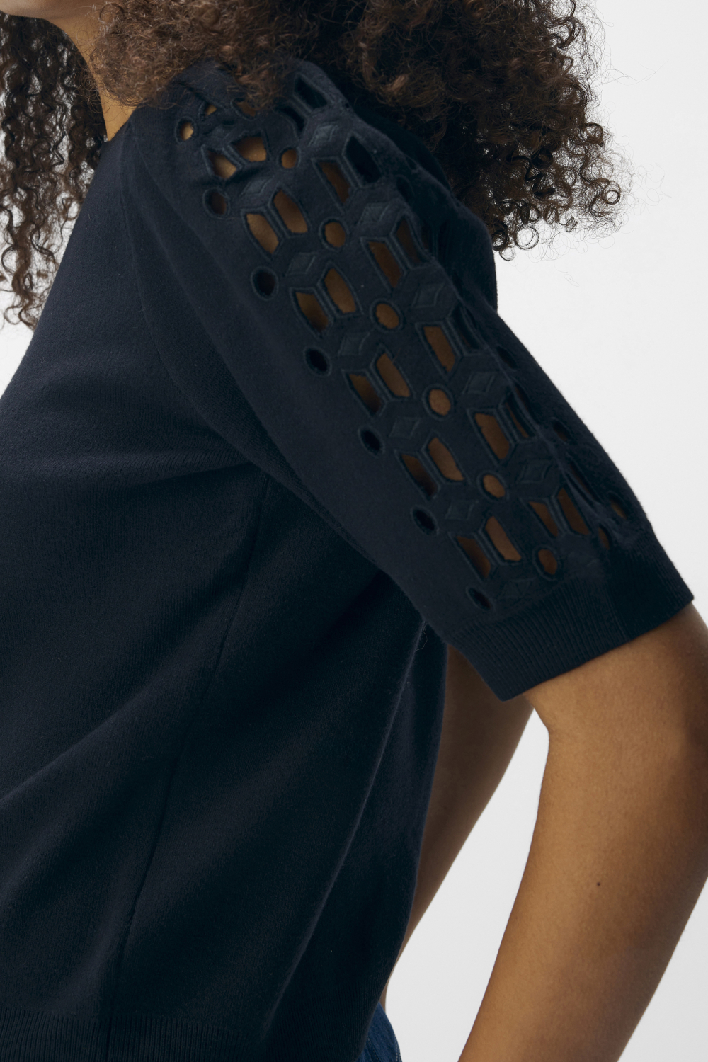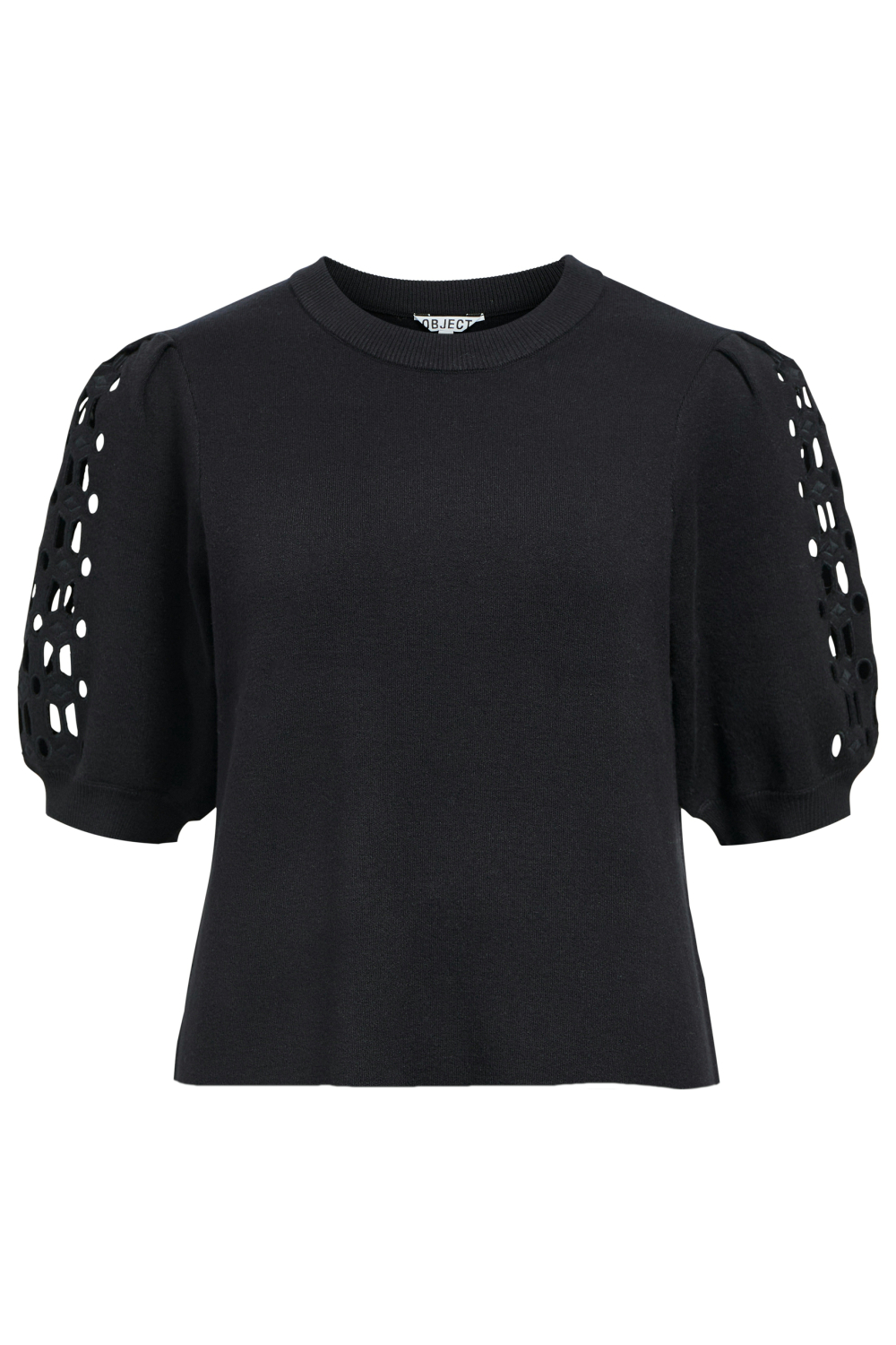 Dit zwarte Object trui is een elegante keuze voor dames die houden van een subtiel statement. Deze regular fit trui, gemaakt van een duurzame mix van viscose OnceMore, polyester en nylon, voelt comfortabel aan en biedt een lichte stretch. Met een ronde hals en korte mouwen is de trui ideaal voor elke dag. De ajourpatroon details op de mouwen geven de trui een unieke, luchtige uitstraling die perfect samengaat met een stijlvolle casual look. Of je nu naar kantoor gaat of een ontspannen dagje uit plant, met deze trui kom je goed voor de dag.