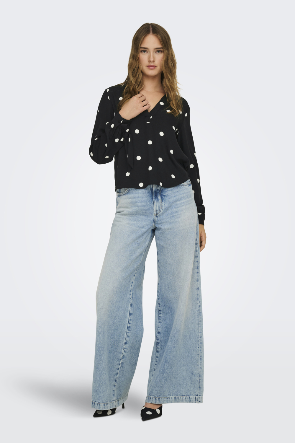 Deze casual blouse van Only is een stijlvolle keuze voor ieder moment van het seizoen. Gemaakt van 100% gerecycled polyester, voelt dit kledingstuk zacht en comfortabel aan op de huid. De blouse heeft een klassiek zwart met witte stippenpatroon, waardoor je gemakkelijk een speelse yet elegante look creëert. De regular fit en de normale lengte maken het ideaal om te dragen in diverse settings, of je nu een dag op kantoor voor de boeg hebt of een informele afspraak in de stad.