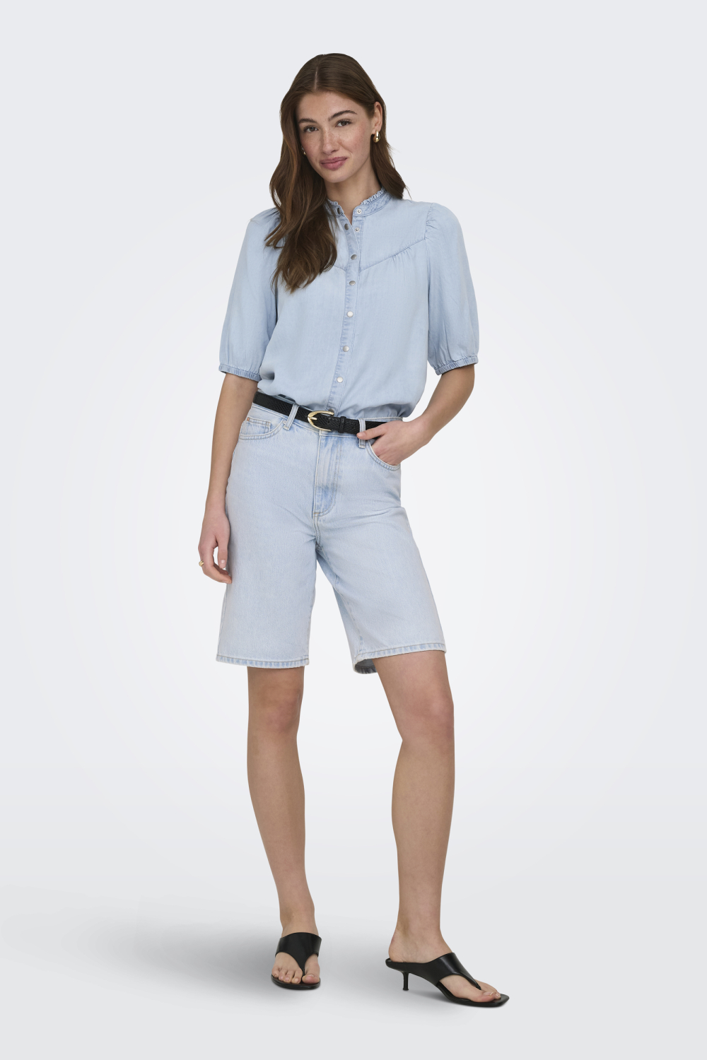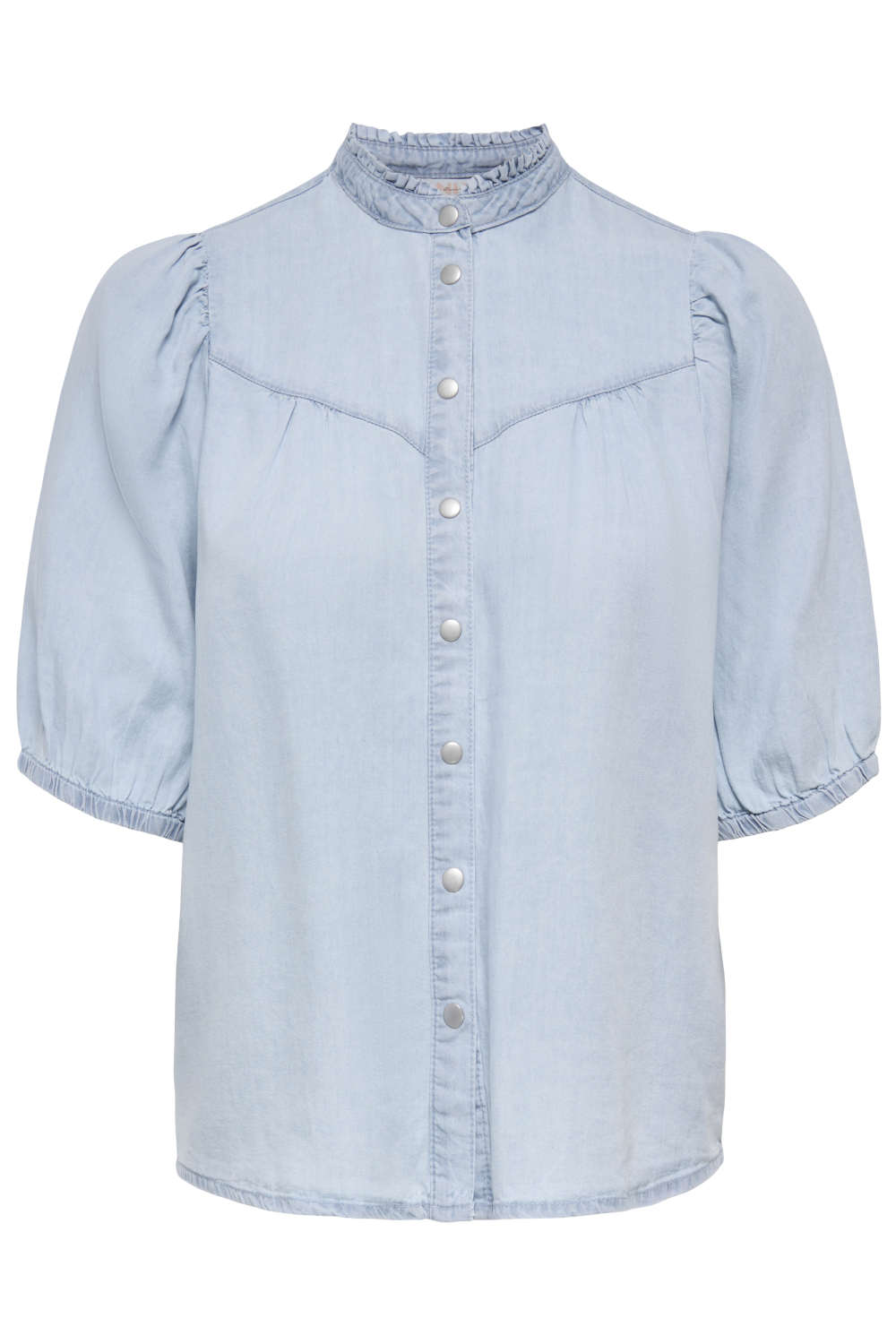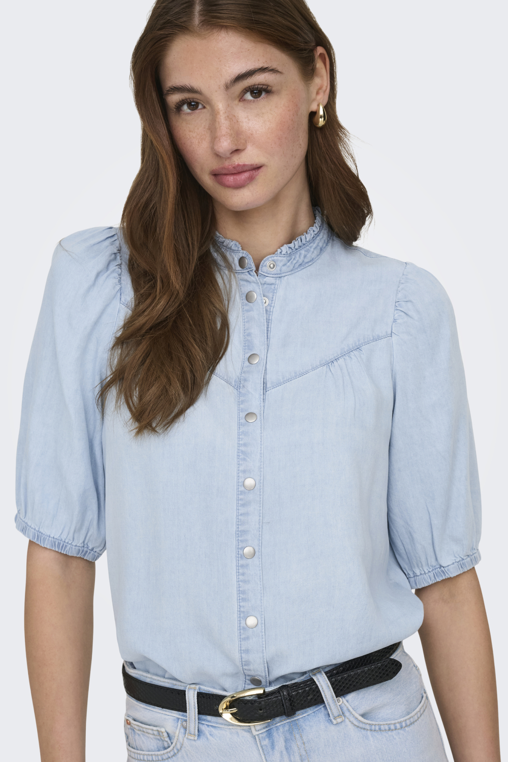 Deze casual lichtblauwe damestop van Only is een prachtige aanvulling op je zomergarderobe. Gemaakt van 100% Lyocell, zorgt het voor een zachte en ademende ervaring die prettig aanvoelt op de huid. De blouse heeft een relaxte regular fit en een flatterende ronde halslijn, waardoor je een comfortabele en stijlvolle look krijgt. Het ontwerp, met zijn 3/4 mouwen en licht poffende schouders, voegt een subtiele flair toe aan je dagelijkse outfit. Met zijn tijdloze uitstraling en subtiele knoopdetails aan de voorkant, is deze blouse perfect voor verschillende gelegenheden. Combineer het met een denim short voor een informele zomerdag of stijl het met een nette zwarte broek voor een avondje uit. De lichtblauwe denimkleur maakt het eenvoudig te combineren met diverse kleuren. Of je nu een wandeling door het park maakt of geniet van een diner op het terras, deze blouse biedt een veelzijdige look die altijd goed aanvoelt.