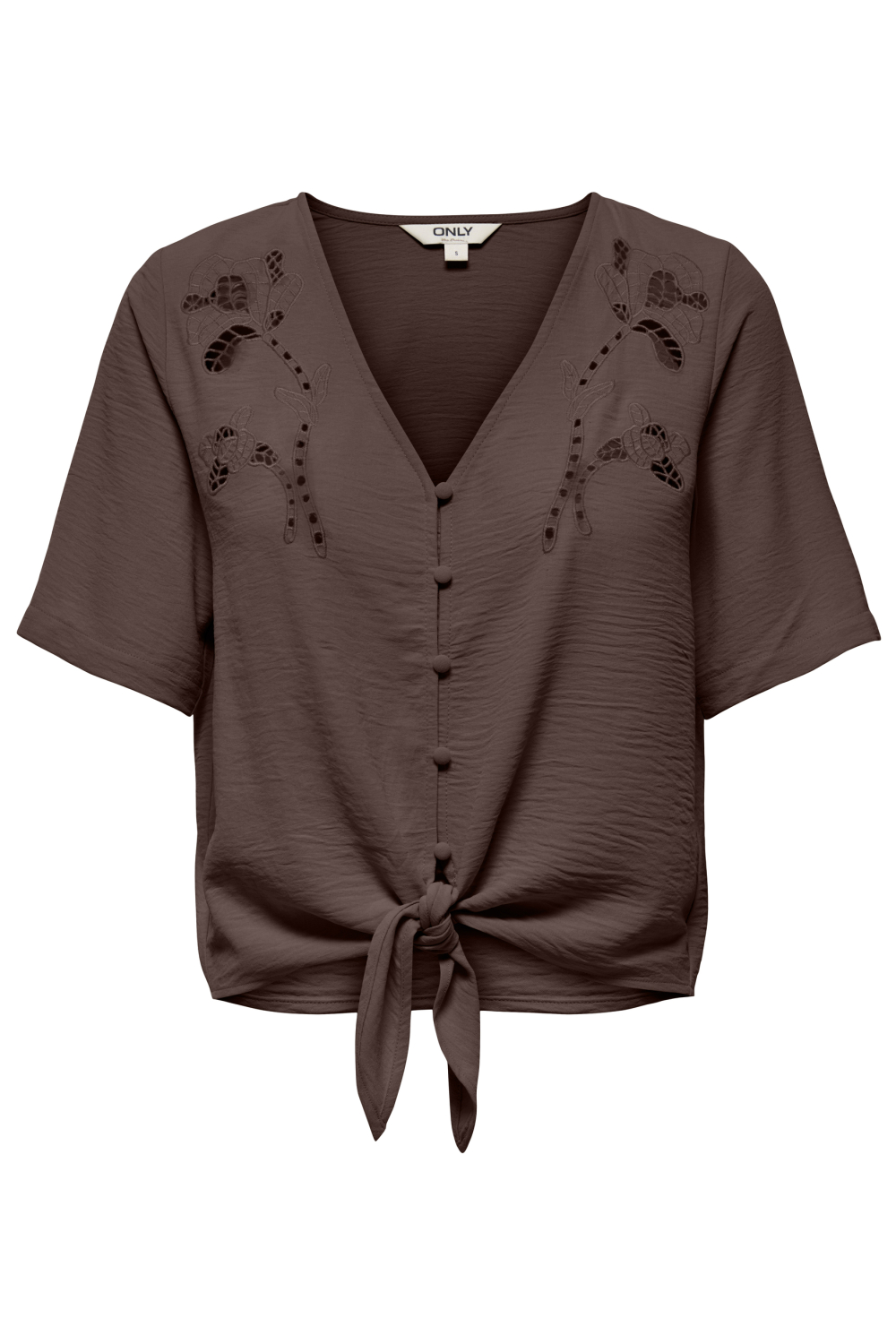 Deze Only damesblouse in de tint "Shopping Bag" is een casual en veelzijdige keuze voor je zomer garderobe. Met een regular fit biedt de blouse een comfortabele pasvorm die niet te strak zit, maar toch je silhouet volgt voor een stijlvolle look. De blouse is gemaakt van 100% gerecycled polyester, wat bijdraagt aan een duurzame modekeuze zonder in te boeten op stijl of comfort. De V-hals en de fraaie ajourdetails geven de blouse een elegante touch die perfect geschikt is voor zowel informele als wat nettere gelegenheden. De blouse heeft korte mouwen en is ontworpen met een knoopsluiting die de speelse en vrouwelijke uitstraling versterkt. De strik aan de voorkant voegt een speelse twist toe aan het geheel, waardoor de blouse ideaal is voor een avondje uit of een gezellig etentje op een zomerse dag. Combineer deze blouse gemakkelijk met een jeans of een lichte rok voor een ontspannen maar verfijnde look. Of je nu naar een lunch gaat of een dagje winkelen, met deze Only blouse zie je er altijd verzorgd uit.