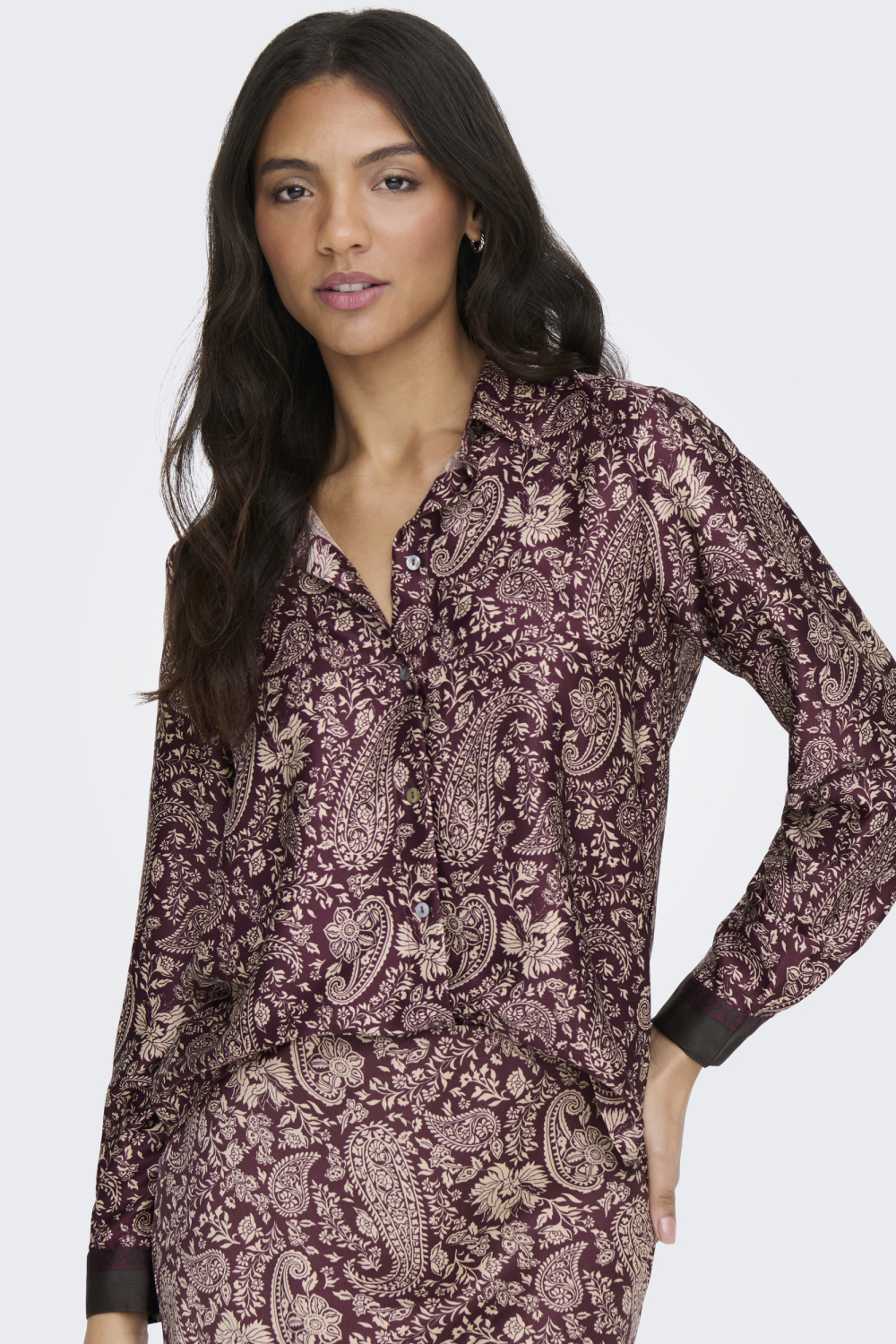 Deze grafische blouse van Only is een elegante toevoeging aan je wintergarderobe. Gemaakt van 100% polyester, biedt deze blouse een relaxed fit en een comfortabele draagervaring. De diepe paars met beige patronen geven het een unieke uitstraling. Met een klassieke puntkraag en een knoopsluiting voegt de blouse een vleugje verfijning toe aan je casual outfit. Deze blouse combineert perfect met zowel broeken als rokken, waardoor het een veelzijdig kledingstuk is voor verschillende gelegenheden. Of je nu een dag op kantoor doorbrengt of een gezellige avond met vrienden plant, de Only blouse is een betrouwbare keuze. De lange mouwen en normale lengte bieden zowel comfort als stijl. Met zijn opvallende grafische patroon voegt deze blouse een speelse en toch stijlvolle touch toe aan je dagelijkse look. Combineer met eenvoudige accessoires om de blouse volledig tot zijn recht te laten komen.