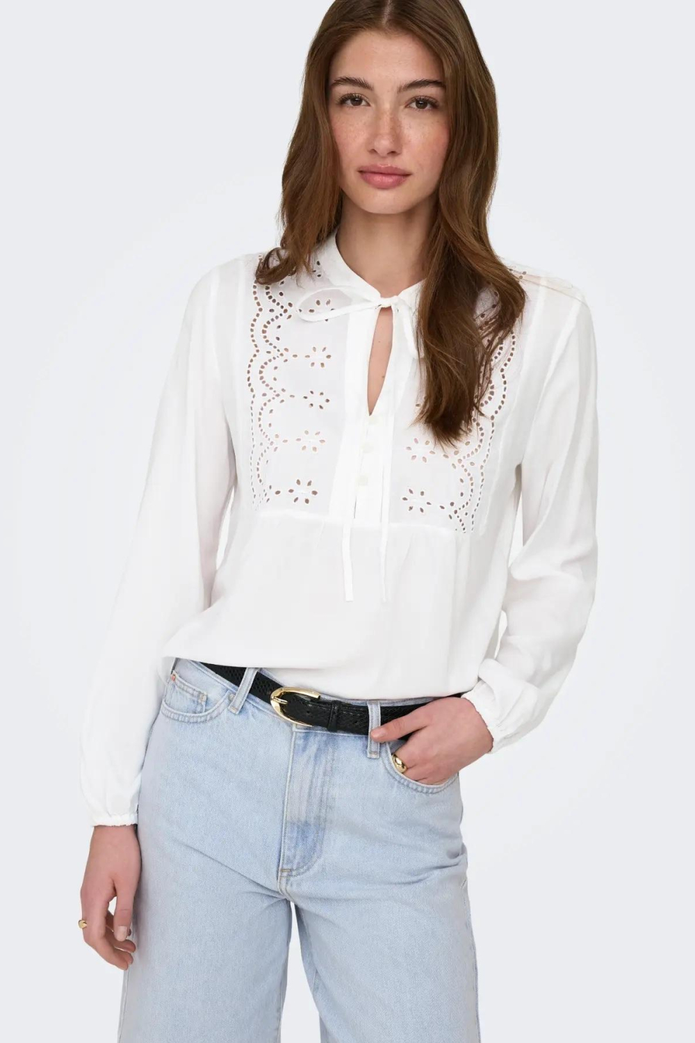 Ervaar de eenvoud en elegantie van deze Only blouse, een casual item dat niet mag ontbreken in je garderobe. Gemaakt van 100% viscose biedt de blouse een zachte en lichte touch, ideaal voor dagelijks gebruik. De bright white kleur geeft een frisse uitstraling, terwijl het subtiele borduurwerk op de voorkant zorgt voor een verfijnd detail. De ronde hals en de knoopsluiting maken het tot een veelzijdig bovenstuk dat prima past bij verschillende outfits.