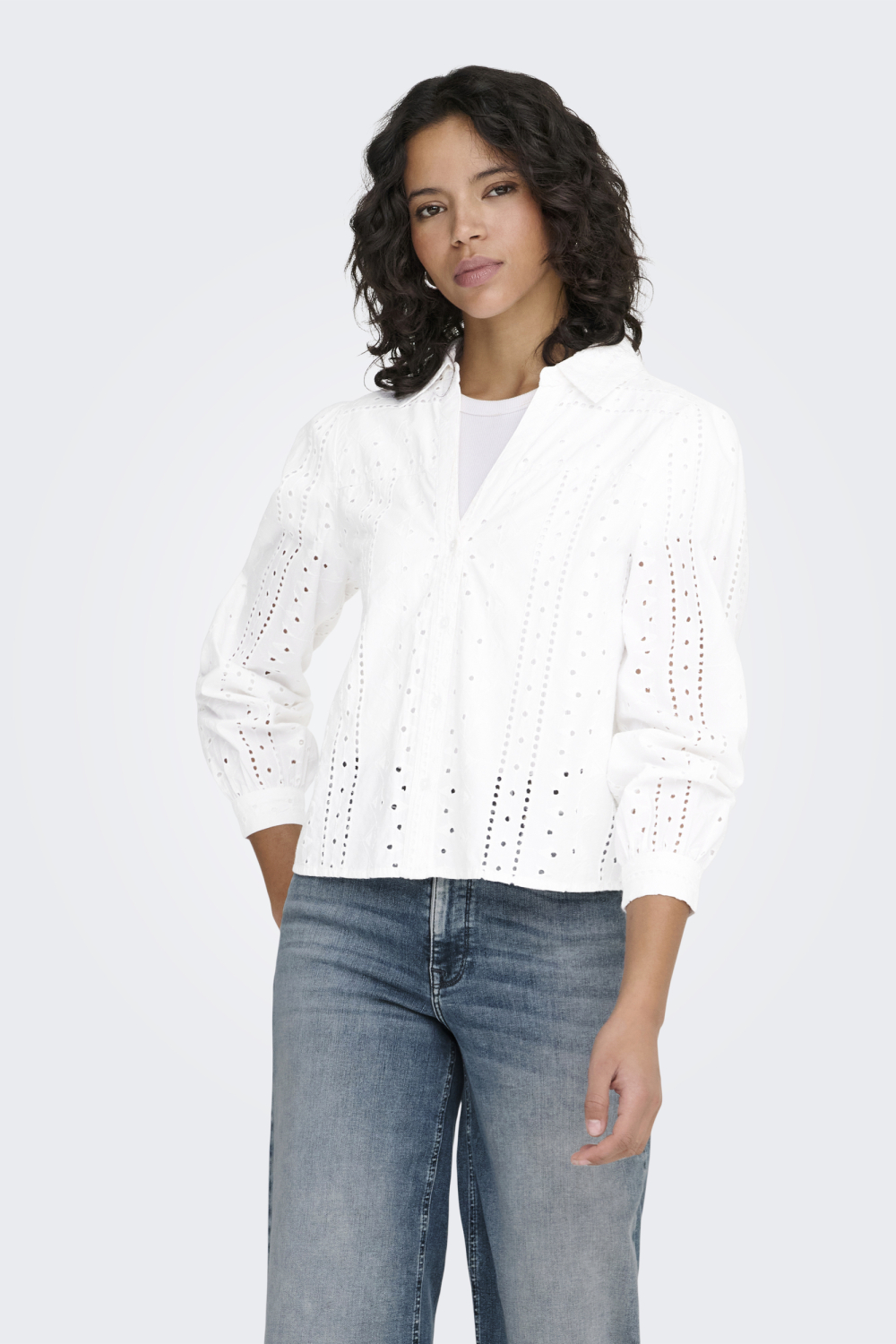 Deze elegante ajour blouse van Only is een ideale keuze voor de lente. De blouse is vervaardigd uit 100% katoen, wat garant staat voor een comfortabele en ademende stof. Het ajour patroon voegt een subtiele klasse toe, terwijl de regular fit pasvorm zorgt voor een comfortabele en passende stijl. Met de klassieke puntkraag en de knoopsluiting behoud je een verfijnde look, geschikt voor zowel casual als iets formelere gelegenheden. Dankzij het tijdloze witte design is deze blouse eenvoudig te combineren met verschillende outfits. Of je nu kiest voor een nette pantalon voor een dag op kantoor of een casual jeans voor een weekenduitje, deze Only blouse past perfect bij jouw stijl. De lange mouwen en normale lengte bieden zowel warmte als bewegingsvrijheid. Perfect voor een lentewandeling of een informele bijeenkomst met vrienden. Kies voor veelzijdigheid en stijl met deze blouse die moeiteloos bij je garderobe past.