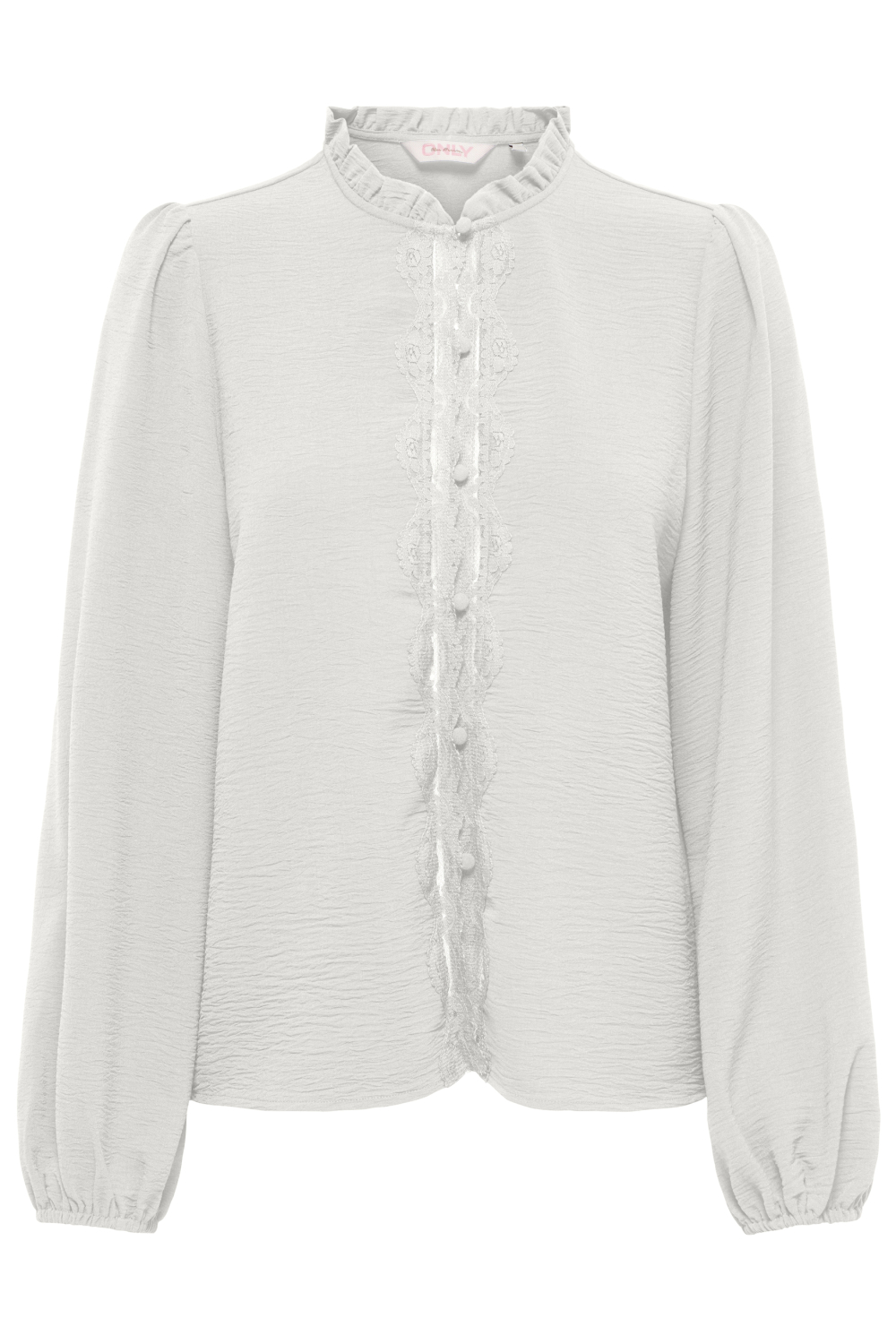 Deze elegante Only blouse in de kleur 'cloud dancer' is een verfijnde toevoeging aan je wintergarderobe. De blouse heeft een regular pasvorm en is gemaakt van 100% gerecycled polyester, wat niet alleen een stijlvol, maar ook een duurzaam statement maakt. Met zijn ronde hals en lange mouwen biedt hij zowel comfort als klasse. De subtiele kantdetails langs de knoopsluiting geven de blouse een vrouwelijke touch, terwijl de licht gerimpelde stof een unieke textuur toevoegt die opvalt.