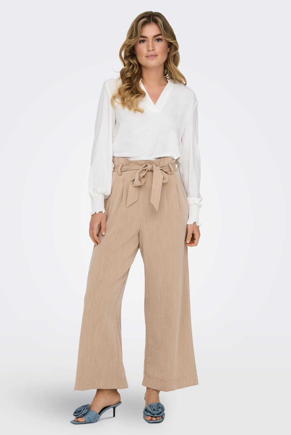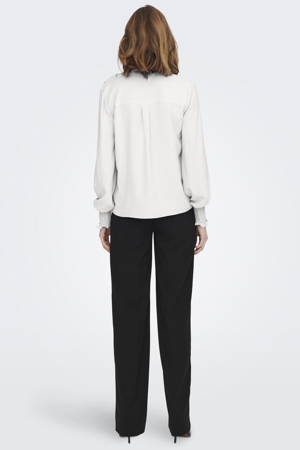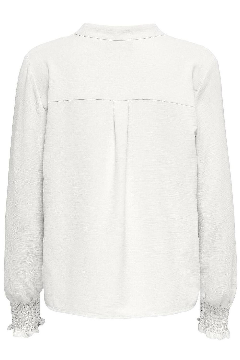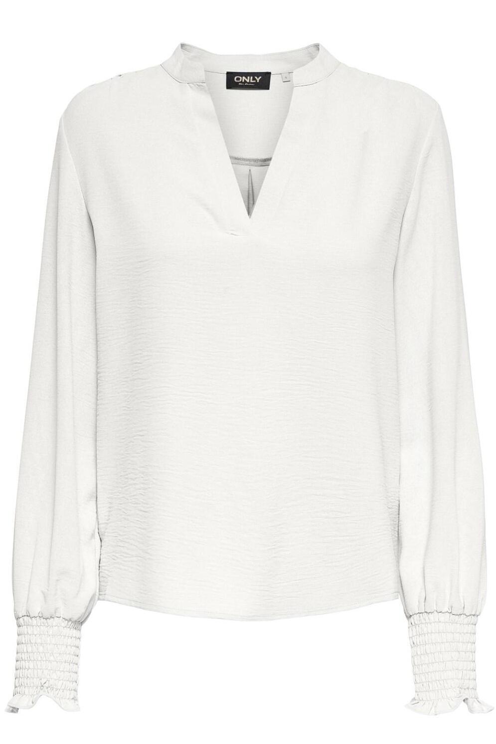 Deze elegante "cloud dancer" blouse van Only is een veelzijdige toevoeging aan je dagelijkse garderobe. De blouse is gemaakt van een duurzame stofmix met 56% gerecycled polyester, waardoor hij niet alleen stijlvol maar ook milieubewust is. De blouse heeft een ontspannen regular fit en een charmante V-hals die je look een subtiele vrouwelijke touch geeft. Dankzij de lange mouwen met geraffineerd elastiek aan de uiteinden, straalt deze blouse zowel comfort als klasse uit. Met zijn subtiele structuurpatroon is deze blouse perfect voor dagelijkse situaties, of je nu een zakelijke afspraak hebt of een casual dagje uit plant. Het normale, licht vallende ontwerp zorgt voor een moeiteloze pasvorm die bij elke gelegenheid past. Combineer de blouse met een stijlvolle pantalon voor een professioneel tintje of geef je look een casual draai met een comfortabele jeans. Door het tijdloze ontwerp en de basis kleur is deze blouse eenvoudig te mixen en matchen, waardoor hij een onmisbaar item in je collectie wordt.