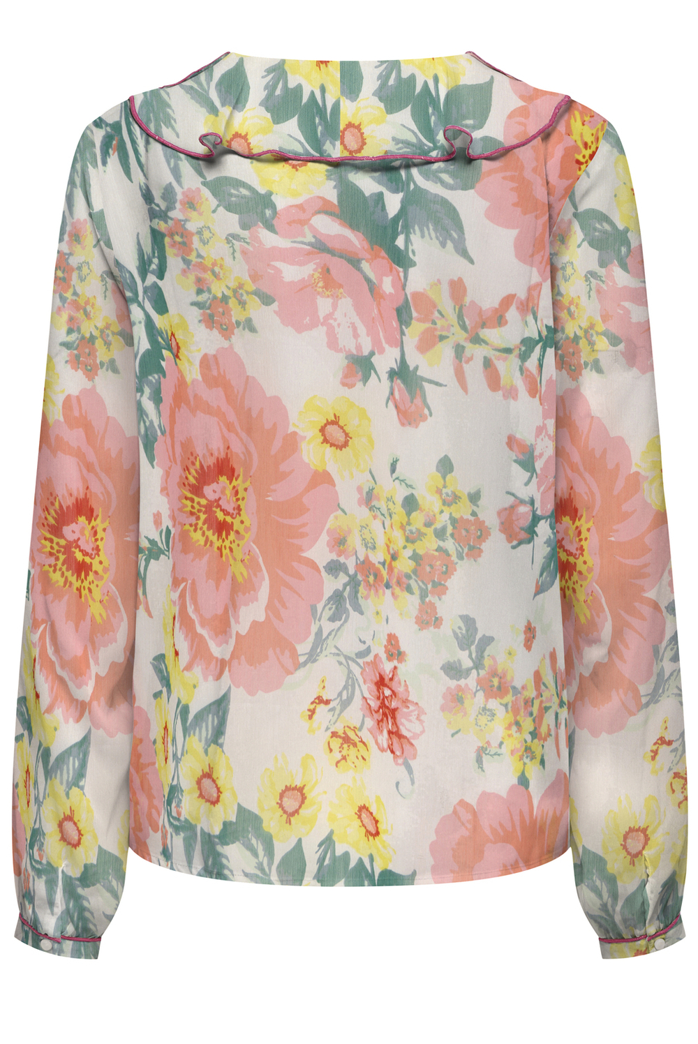 Deze luchtige Cloud Dancer blouse met BIG FLOWER van Only is een stijlvolle aanwinst voor je zomergarderobe. Het grafische bloemenpatroon in zachte pasteltinten geeft de blouse een levendige uitstraling. De V-hals en de sierlijke ruches zorgen voor een speelse touch, terwijl de regular fit pasvorm je een comfortabele en flatterende look biedt. De blouse is gemaakt van 100% polyester, wat zorgt voor een lichte en luchtige stof die perfect bij zonnig weer past.