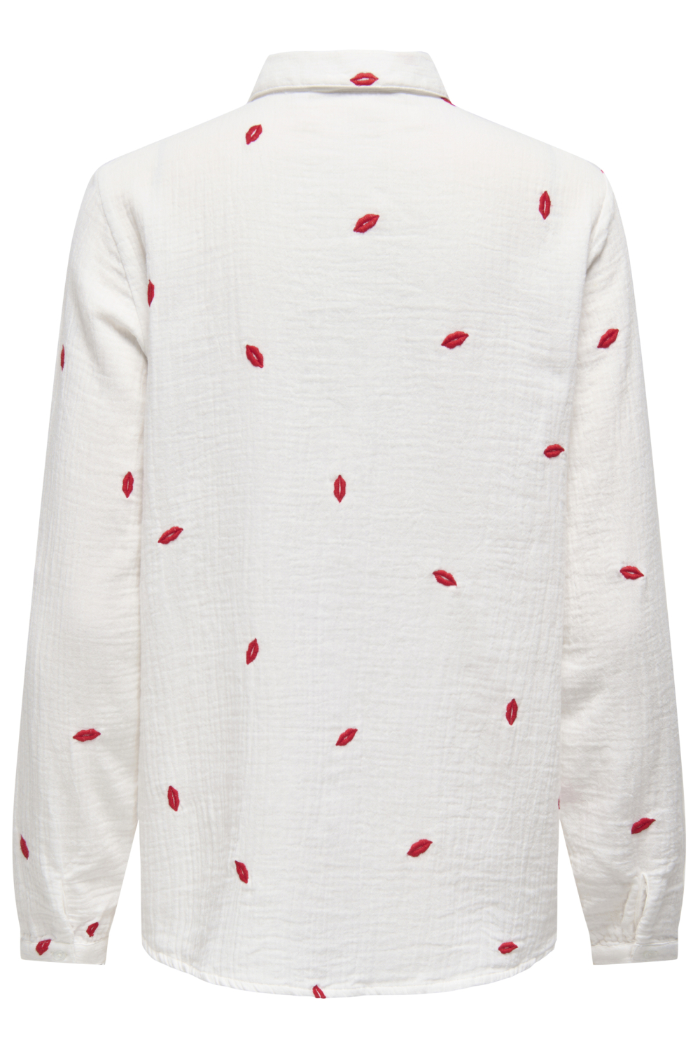 Deze stijlvolle grafische blouse van Only is een must-have voor iedere damesgarderobe. Met een opvallend patroon van rode lippen op een lichte achtergrond, biedt deze blouse een speelse en artistieke touch. Gemaakt van 100% katoen, geniet je van een comfortabele pasvorm die licht en luchtig aanvoelt. De puntkraag en knoopsluiting geven de blouse een klassiek tintje, terwijl de regular fit zorgt voor een flatterende, ontspannen look. Ideaal voor de lente, deze blouse is perfect voor casual settings zoals een ontspannen lunch of een dagje uit. Toch kan hij ook eenvoudig gecombineerd worden met een nette broek voor een iets formelere gelegenheid. De lange mouwen maken het veelzijdig genoeg voor koele dagen zonder in te boeten aan stijl. Of je nu op zoek bent naar iets speciaals voor een dag op kantoor of een weekenduitje, deze Only blouse voegt een vleugje eigenzinnigheid en charme toe aan elke outfit.