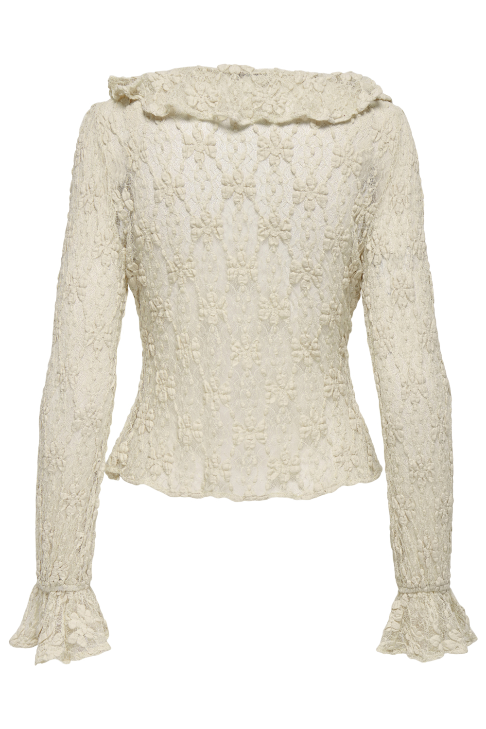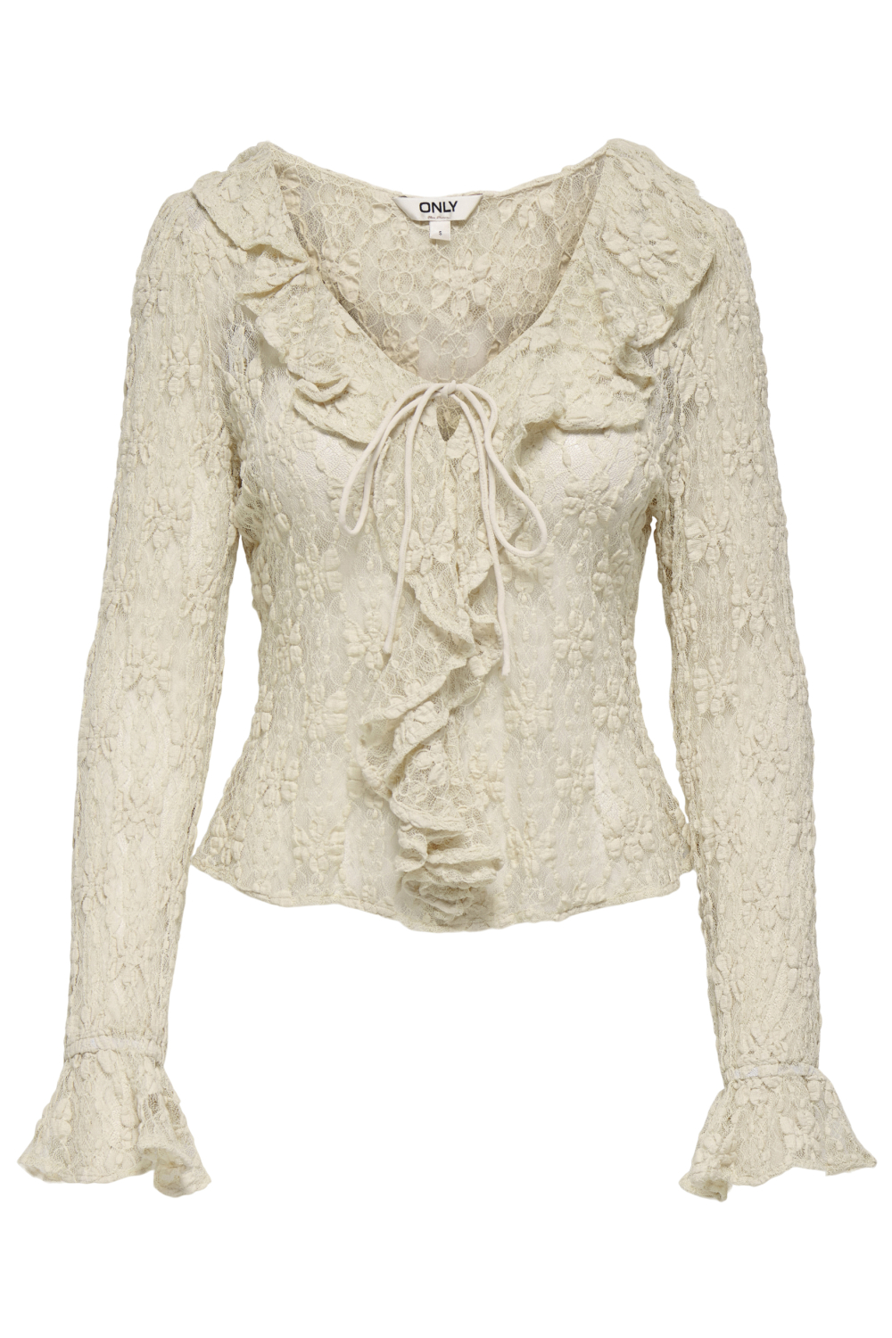 Deze elegante damesblouse van Only is een verfijnde toevoeging aan je lente-garderobe. De blouse is vervaardigd in een luxueuze, kantachtige stof met een delicaat bloemenpatroon, wat het een subtiele en stijlvolle textuur geeft. De birch-kleur biedt een zachte, natuurlijke uitstraling die makkelijk te combineren is met andere kledingstukken. Met een V-hals en een speels strikkoord, straalt deze blouse zowel charme als casual elegantie uit. De regular fit garandeert een comfortabele pasvorm, ideaal voor dagelijkse activiteiten of informele ontmoetingen. De lange mouwen van deze blouse zorgen voor een verfijnde look, terwijl de korte lengte een modern contrast biedt. Perfect voor een ontspannen dag in het park of een gezellige brunch met vrienden. Door het luchtige kantmateriaal voelt de blouse licht en aangenaam, zelfs op warmere lentedagen. Combineer het met een jeans voor een casual uitstraling of draag het met een rok voor een meer verfijnde, vrouwelijke look. Deze blouse van Only biedt je alle flexibiliteit om elke dag stijlvol en comfortabel te zijn.