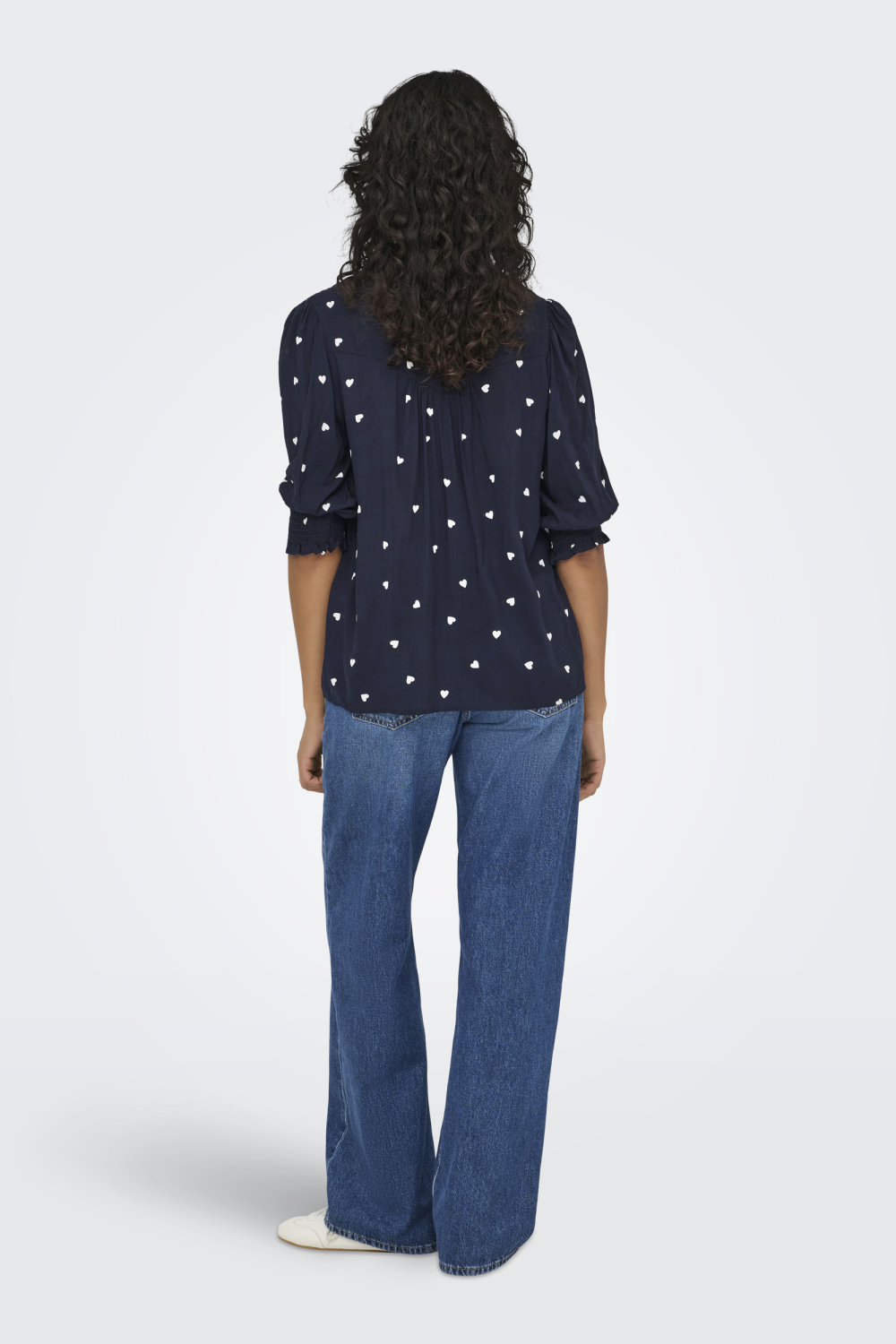 Deze charmante Only blouse met hartjespatroon biedt een casual stijl die jouw wintergarderobe perfect aanvult. Het ontwerp heeft een regular pasvorm en is gemaakt van 100% viscose, waardoor het comfortabel en ademend is. Met een elegante V-hals en een knoopsluiting voegt het een vleugje verfijning toe aan je dagelijkse look. De 3/4 mouwen zijn voorzien van subtiele plooien die een speels effect geven en zorgen voor een onderscheidende uitstraling.