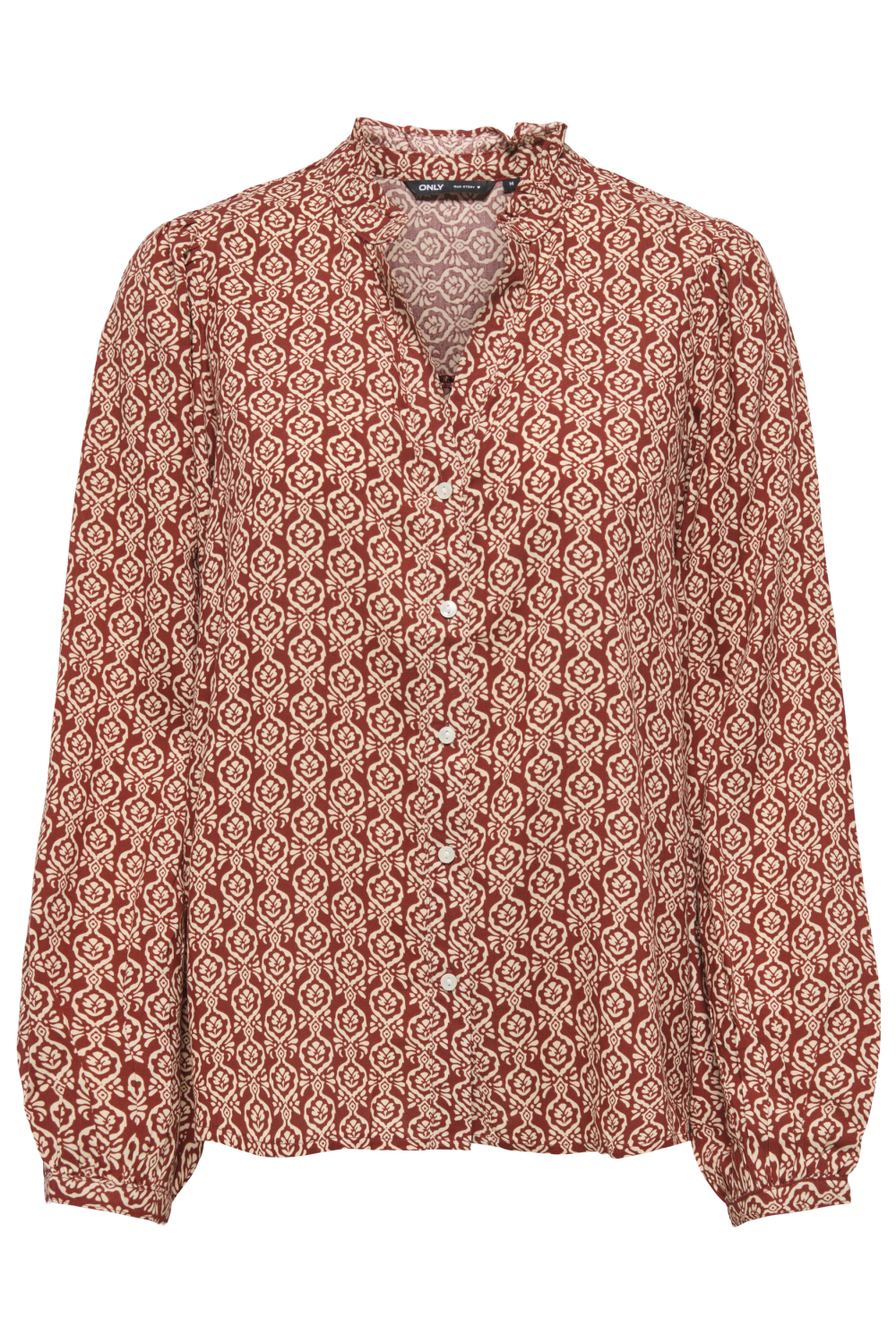 Deze Only blouse, uitgevoerd in de stijlvolle kleur Burnt Henna, is een veelzijdige aanwinst voor je garderobe. Met een grafisch patroon dat je outfit net dat beetje extra geeft, is deze blouse perfect om elke dag te dragen. De blouse heeft een regular pasvorm, wat zorgt voor een comfortabele en ontspannen uitstraling. De V-hals en de knoopsluiting geven een klassieke touch aan dit eigentijdse kledingstuk, terwijl de lange mouwen je outfit net dat beetje extra stijl bieden. Gemaakt van 100% viscose, voelt de stof zijdezacht aan op de huid.