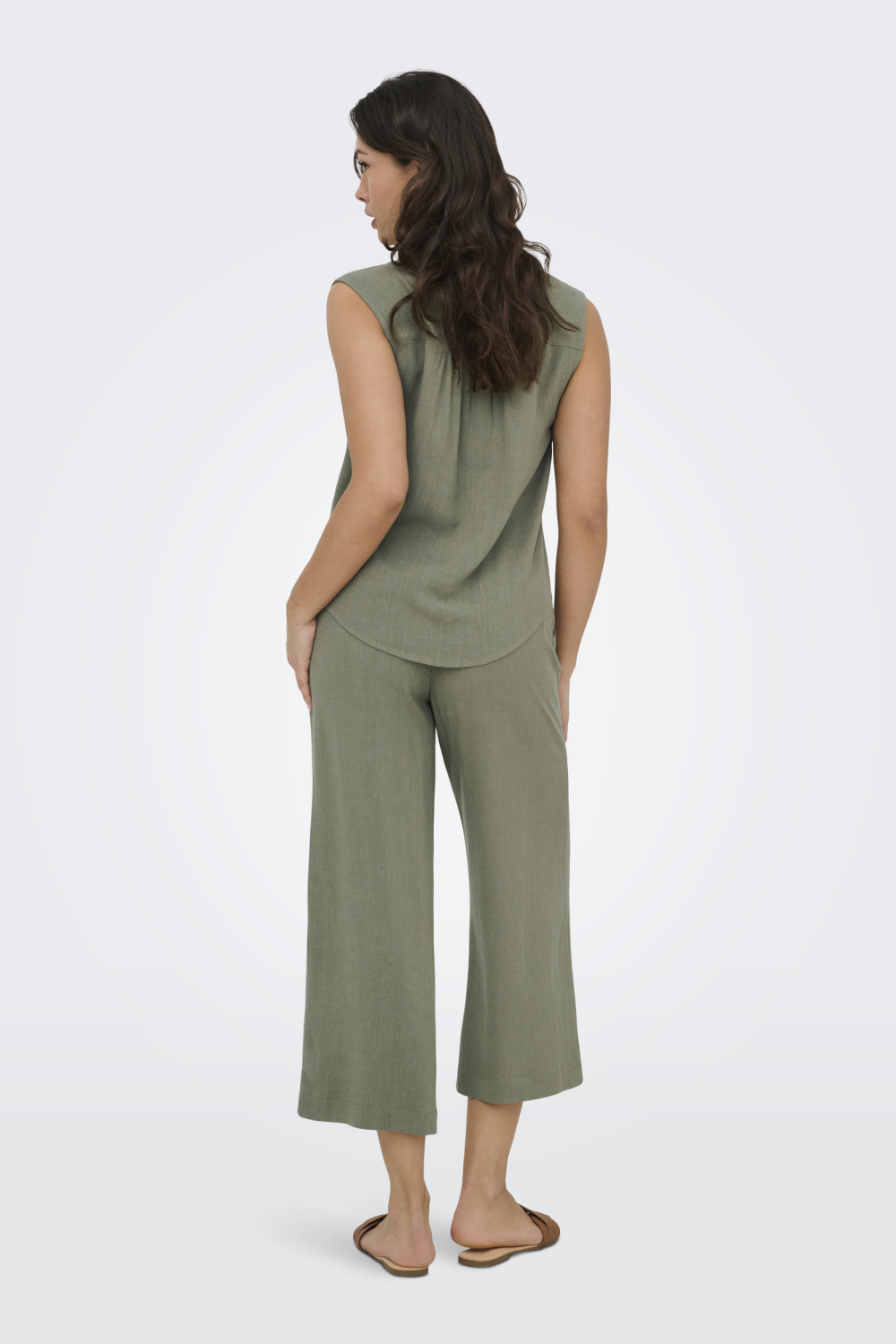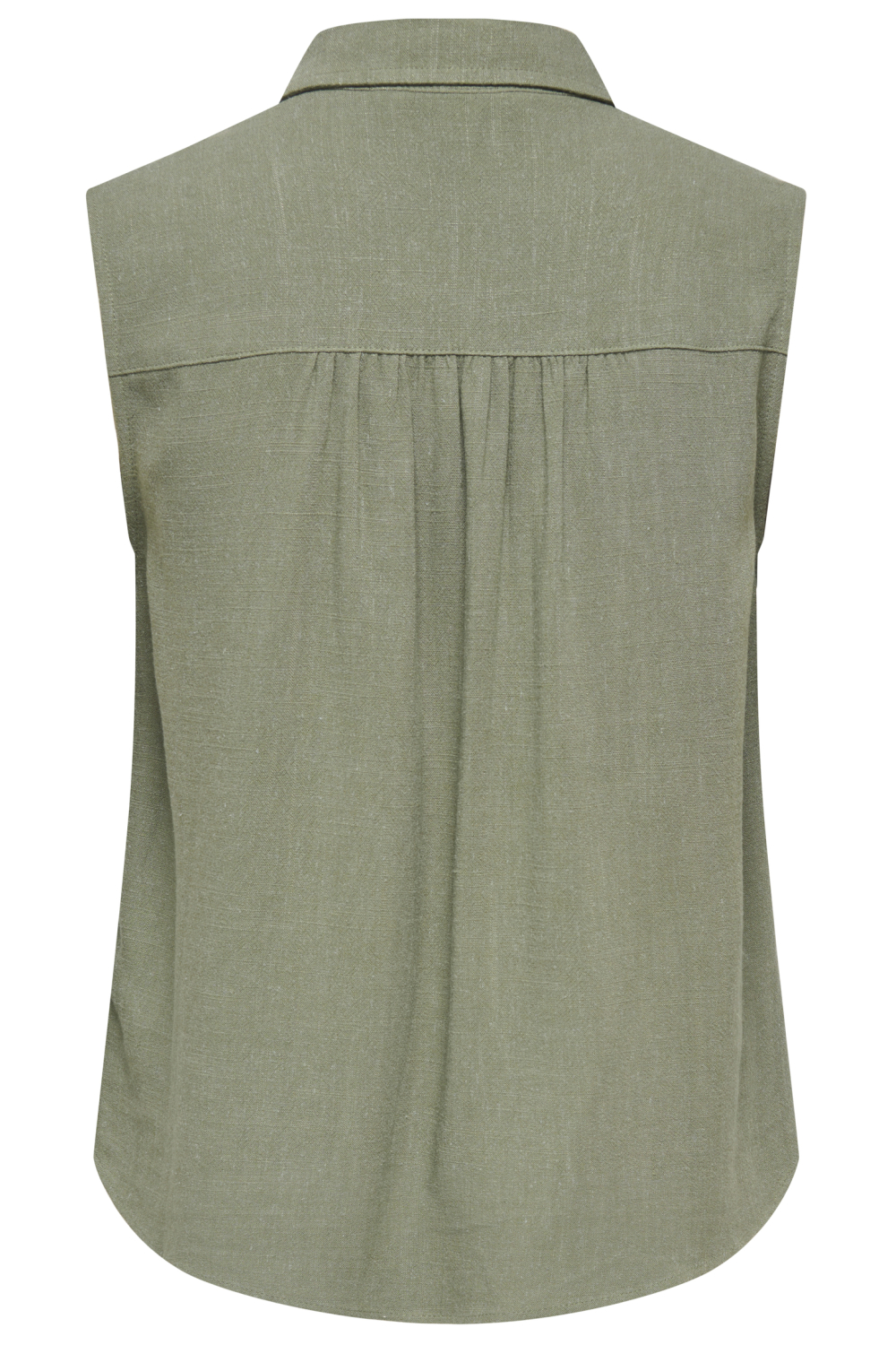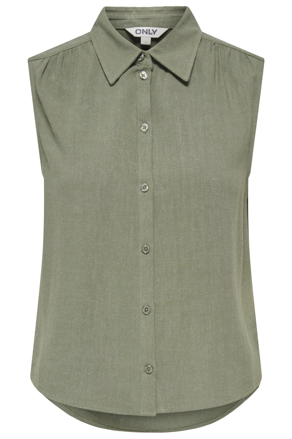 Deze casual damesblouse van Only in de kleur Deep Lichen Green is een stijlvolle toevoeging aan je voorjaarsgarderobe. Gemaakt van een combinatie van 80% viscose en 20% linnen, voelt de stof heerlijk zacht en licht aan op je huid. De puntige kraag en knoopsluiting geven de mouwloze blouse een klassieke uitstraling, terwijl de regular pasvorm ervoor zorgt dat hij comfortabel zit. Dankzij de frisse, groene tint is deze blouse een prima keuze voor allerlei gelegenheden, van een ontspannen dagje uit tot een informele werksetting. Het tijdloze ontwerp van deze blouse maakt het makkelijk te combineren met verschillende stijlen. Draag hem met een elegante pantalon voor een chique look of kies een relaxte jeans voor een casual uitstraling. De normale lengte en het mouwloze design maken het een ideaal kledingstuk voor de lente, terwijl de stof ervoor zorgt dat je je de hele dag fris en comfortabel voelt. Met deze blouse van Only voeg je een veelzijdig en stijlvol item toe aan je collectie, perfect voor dagelijks gebruik.