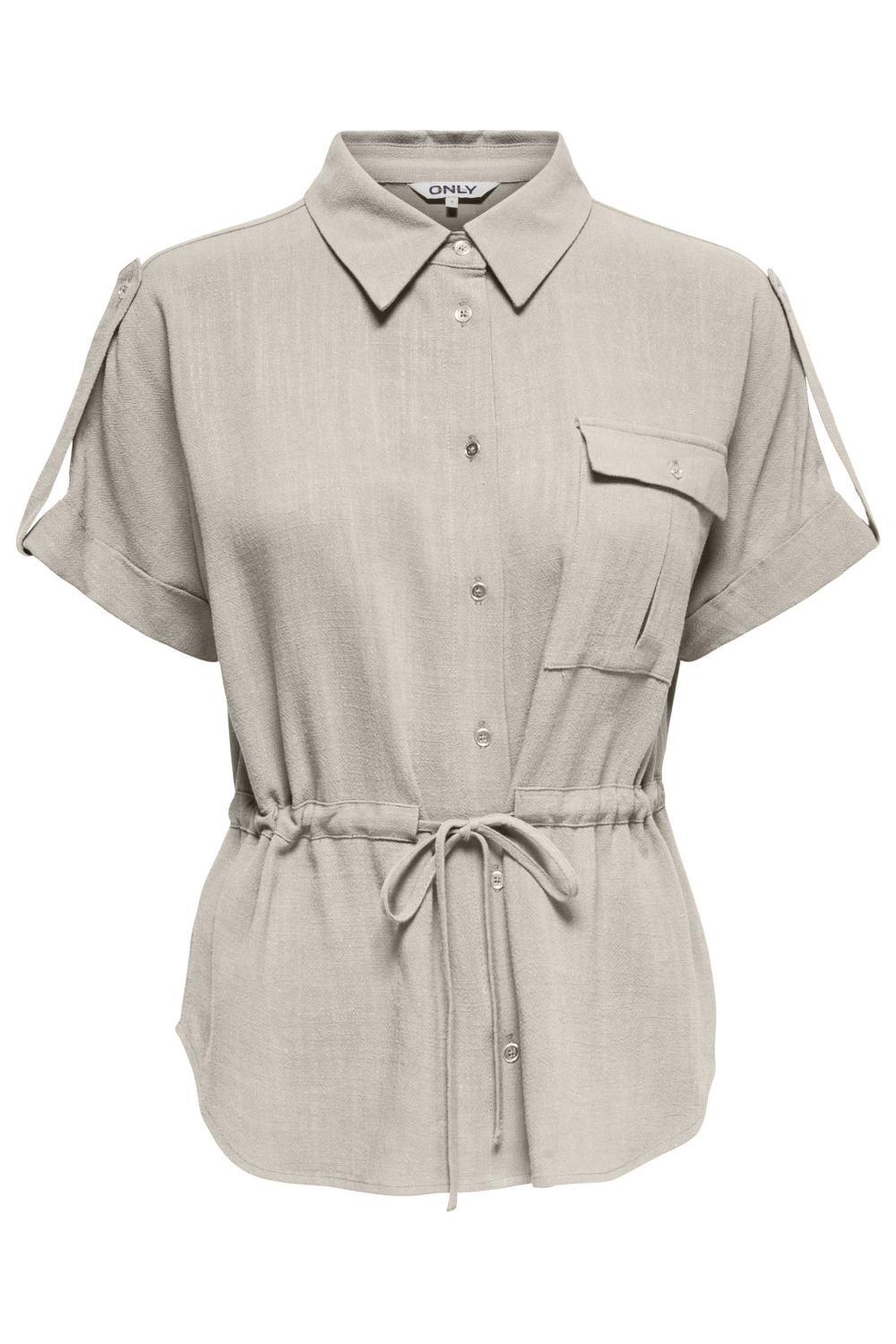 Deze stijlvolle damesblouse van Only is een verfijnde en veelzijdige keuze voor je lente garderobe. De blouse heeft een regular fit, met een charmante puntkraag en een knoopsluiting voor een tijdloze look. Gemaakt van een zachte mix van 80% viscose en 20% vlas of linnen, biedt deze blouse een luchtige en comfortabele draagervaring. De korte mouwen en subtiele tailleriem geven de blouse een stijlvolle touch die zowel casual als elegant is. Dankzij het beige tint is deze blouse gemakkelijk te combineren met andere items uit je kast. Draag hem met een lichte jeans voor een ontspannen dagje uit, of combineer hem met een nette rok voor een meer geklede look. De normale lengte maakt het een veelzijdig kledingstuk dat geschikt is voor verschillende gelegenheden, of je nu een middag op kantoor doorbrengt of een gezellige lunch hebt gepland. Deze Only blouse biedt een perfecte mix van stijl en comfort tijdens de mildere lentedagen.