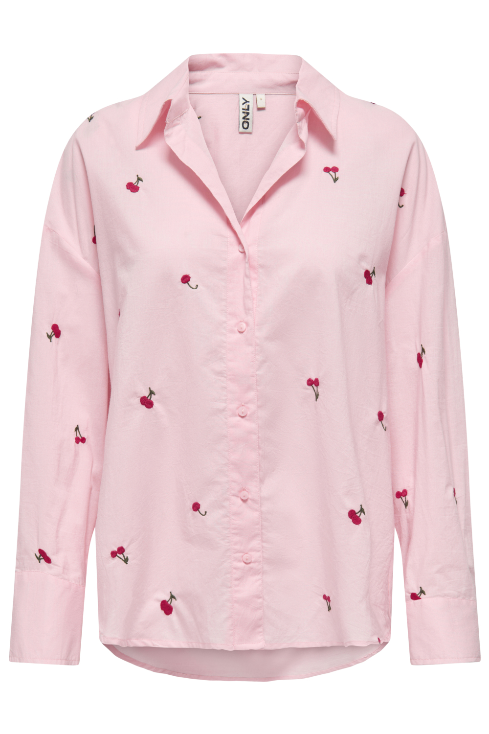 Deze charmante blouse van Only is een prachtige toevoeging aan jouw garderobe. Het model is gemaakt van 100% katoen, waardoor het zacht aanvoelt en ideaal is voor het lenteweer. De blouse heeft een vrolijk fruitpatroon tegen een subtiele roze achtergrond, wat het een speelse en stijlvolle uitstraling geeft. Dankzij de regular fit pasvorm en de klassieke puntkraag, biedt deze blouse zowel comfort als een elegante uitstraling, perfect voor informele gelegenheden.