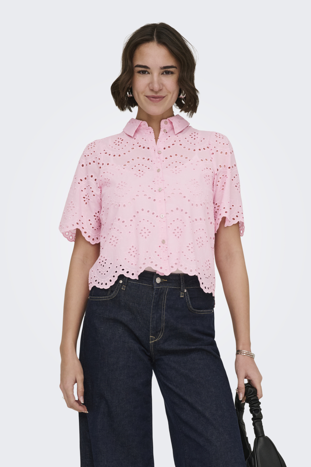 Deze prachtige Pink Lady blouse van Only is een ideale toevoeging aan je lente-garderobe. De frisse roze kleur en het elegante kantpatroon brengen een vrolijke en vrouwelijke uitstraling. Met een regular fit pasvorm en een klassieke punt kraag biedt deze blouse zowel stijl als comfort, ideaal voor casual gelegenheden. Gemaakt van 100% katoen, voelt de stof heerlijk zacht en luchtig aan, perfect voor warmer weer. De korte mouwen en normale lengte maken deze blouse veelzijdig en makkelijk te combineren met zowel een rok als een jeans. Of je nu een dagje uit plant of een ontspannen wandeling maakt, deze Only blouse is een stijlvolle keuze die je outfit een subtiele charme geeft.