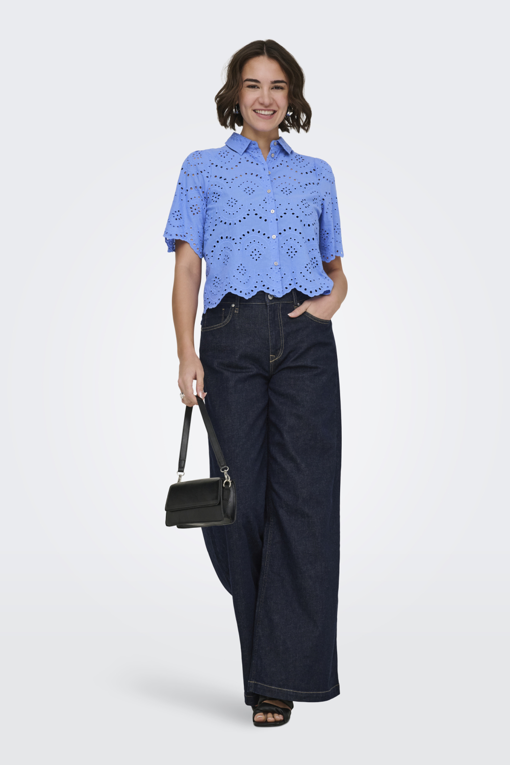 Deze elegante blouse van Only in de kleur Provence is een veelzijdige toevoeging aan je zomergarderobe. De blouse is gemaakt van 100% katoen en heeft een luchtig ajourpatroon dat zowel stijlvol als comfortabel is voor warme dagen. Met zijn regular fit biedt deze blouse een ontspannen pasvorm die perfect aansluit, zonder de bewegingsvrijheid te beperken. De klassieke puntkraag en de knoopsluiting geven het geheel een verfijnde uitstraling, terwijl de korte mouwen het casual karakter benadrukken. Door het tijdloze design is deze blouse ideaal voor verschillende gelegenheden. Combineer het met een nette rok voor een zomerse dag op kantoor of draag het met een casual jeans tijdens een ontspannen weekend uitstapje. De normale lengte en luchtige stof maken het een comfortabele keuze voor iedere dag. Of je nu een dagje uit plant of een etentje op de agenda hebt staan, deze blouse past bij elke gelegenheid en voegt een vleugje stijl toe aan je outfit.