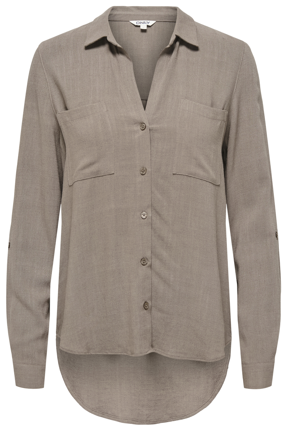 De Only blouse in de kleur WALNUT biedt een stijlvolle en casual toevoeging aan je zomeroutfits. Gemaakt van een comfortabele mix van 80% viscose en 20% linnen, voelt deze blouse luchtig en zacht aan op de huid. De regular fit en halflange lengte zorgen voor een relaxte pasvorm die ideaal is voor dagelijkse kleding. Met lange mouwen en een puntkraag straalt de blouse een moeiteloze elegantie uit die eenvoudig te combineren is met zowel jeans als rokken. Deze gemêleerde blouse is voorzien van knoopsluitingen en praktische borstzakken, die bijdragen aan de veelzijdigheid en functionaliteit. Perfect voor informele bijeenkomsten, een lunchdate of zelfs een ontspannen dag op kantoor. De tijdloze uitstraling van deze blouse maakt het een essentieel item dat overal mee te dragen is, of je nu kiest voor een chique of een nonchalante look. Dankzij de subtiele details en hoogwaardige afwerking ben je verzekerd van een modieuze uitstraling, keer op keer.