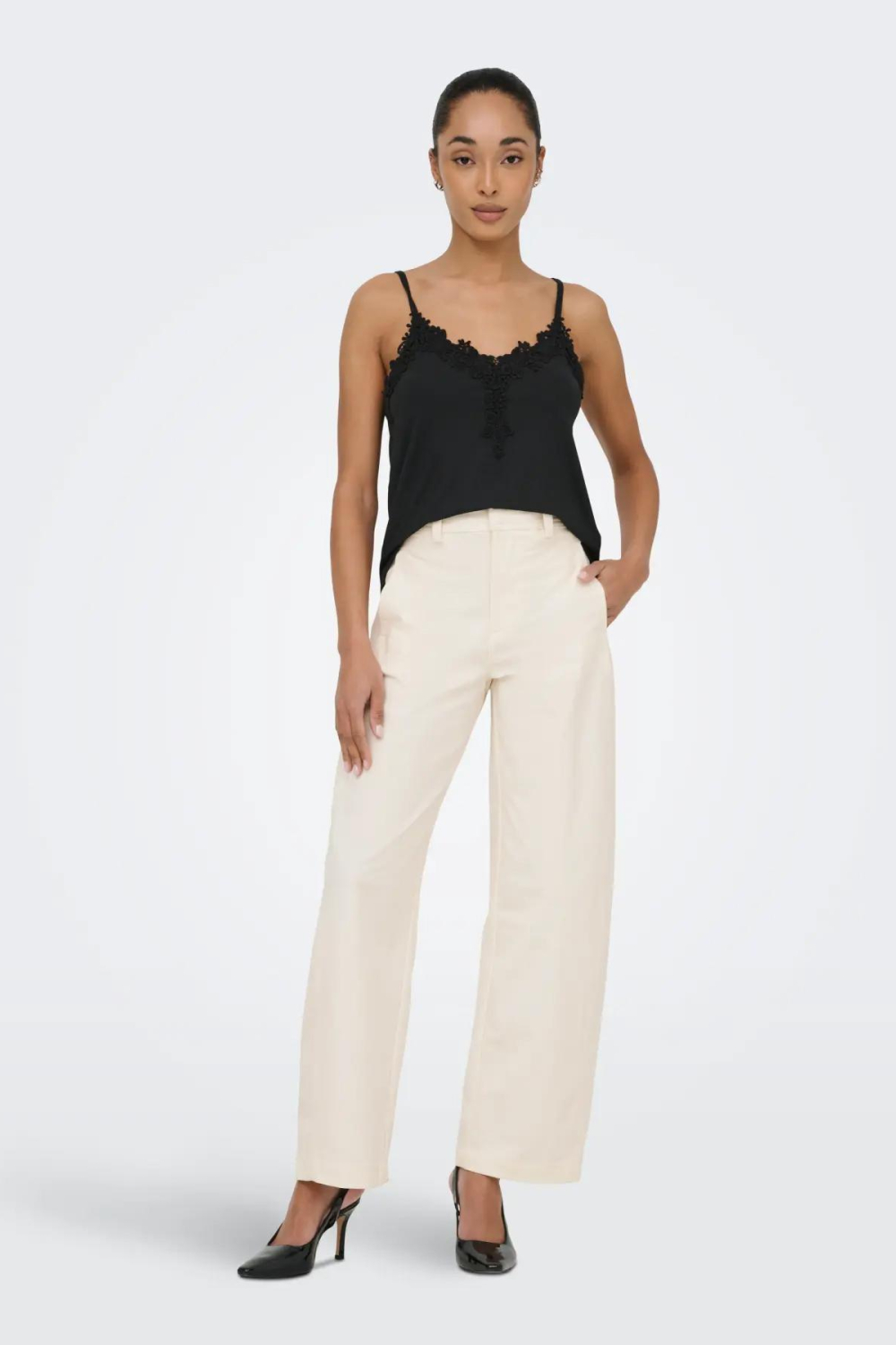 Met zijn klassieke en casual uitstraling is deze broek een uitstekende match voor verschillende gelegenheden. De lichte tint maakt het eenvoudig om te combineren met zowel donkere als felle kleuren voor een frisse of juist gedurfde look. Of je nu een dagje de stad ingaat of een informele bijeenkomst bijwoont, deze broek geeft jouw outfit een moderne en tijdloze uitstraling. De knoop- en ritssluiting aan de voorzijde benadrukken de eenvoud en functionaliteit, terwijl de ruime zakken aan de achterkant zorgen voor een speelse touch. Voeg deze veelzijdige Only broek toe aan je garderobe voor een moeiteloze stijl.