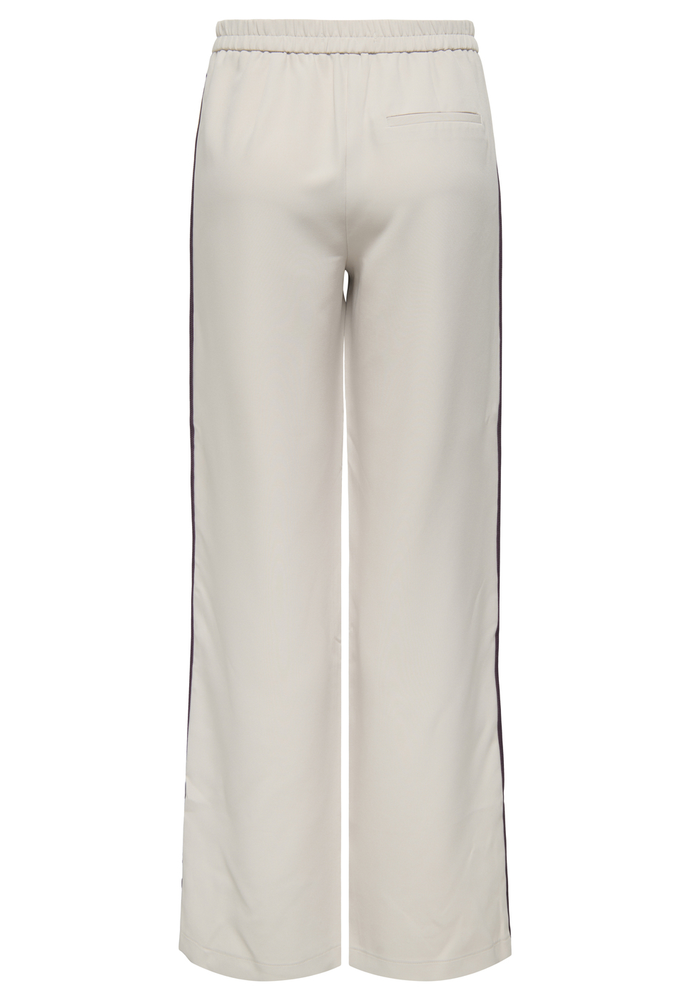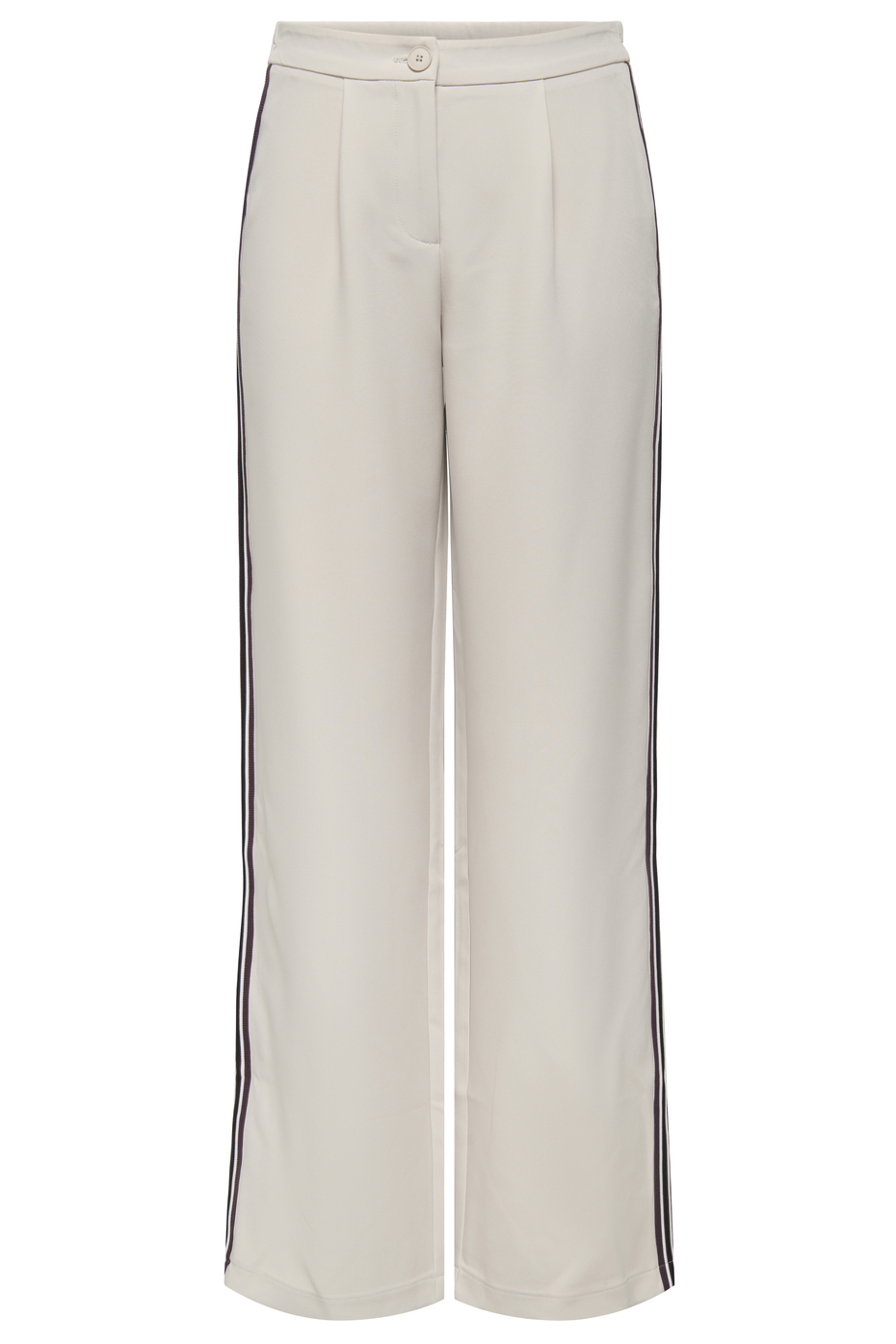 Deze elegante Only damesbroek met wide leg pasvorm is een smaakvolle keuze voor zomerse dagen. Gemaakt van 95% polyester en 5% elastan, biedt dit kledingstuk een lichte en comfortabele stof die moeiteloos met je meebeweegt. De subtiele Pumice Stone kleur, gecombineerd met een high waist en stijlvolle knoop/ritssluiting, geeft een moderne touch aan je garderobe. De donkere zijstroken voegen een speels accent toe, waardoor de broek een veelzijdige aanvulling is op zowel casual als meer geklede outfits.