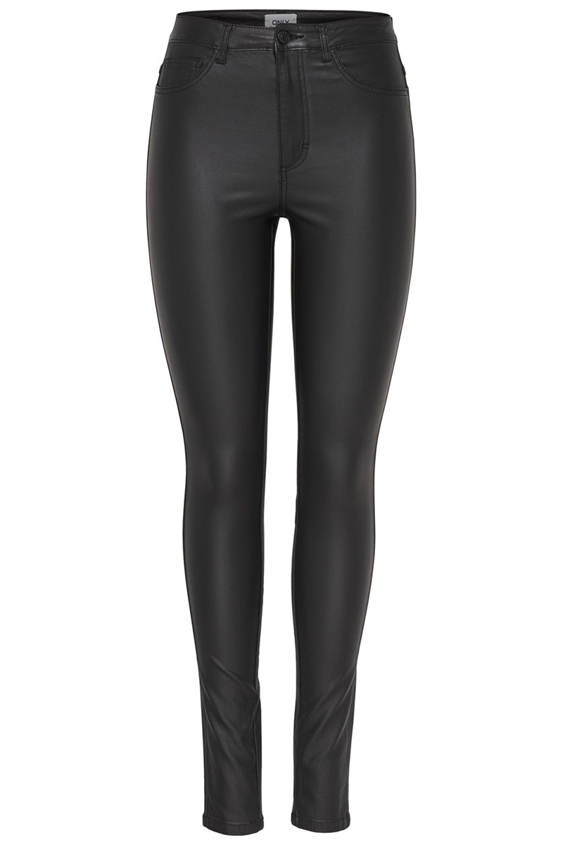 Deze chique zwarte broek van Only is een veelzijdige toevoeging aan je garderobe. Met zijn slim fit pasvorm en high waist design creëert hij een gestroomlijnd silhouet dat perfect is voor allerlei gelegenheden. De coating op de stof geeft een eigentijdse look, waardoor de broek net dat beetje extra flair krijgt. Gemaakt van een mix van viscose, nylon en elastan, biedt hij zowel comfort als flexibiliteit, ideaal voor een dag op kantoor of een casual avondje uit. Dankzij de 5-pocket stijl en de knoop- en ritssluiting heeft deze broek een praktische en moderne uitstraling. Combineer hem met een elegante blouse voor een business casual outfit of draag hem met een eenvoudig T-shirt voor een relaxte, doch stijlvolle weekendlook. De normale lengte en de veelzijdige zwarte kleur maken het een makkelijk te combineren item, welk seizoen dan ook. Deze broek is een prima keuze voor zowel alledaagse als speciale gelegenheden.