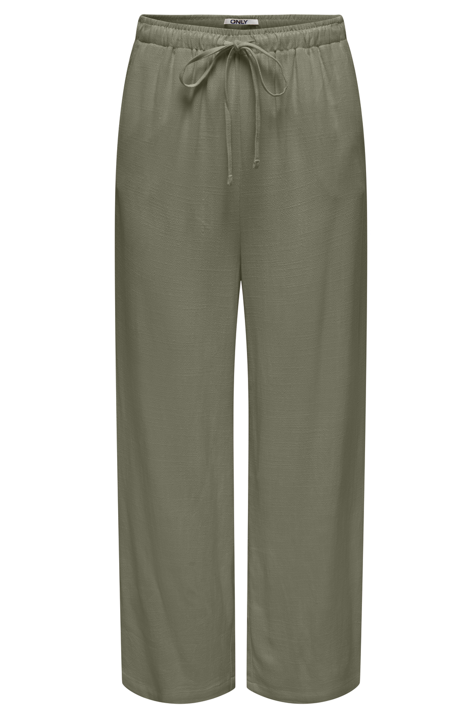 De groene damesbroek van Only is een fijne toevoeging aan je casual garderobe. Met een straight fit pasvorm zorgt deze broek voor een moderne uitstraling. De elastische boord biedt een comfortabele sluiting en is eenvoudig aan te passen met een koordje. De structuur van de stof geeft de broek een speelse touch, terwijl de diepe Lichen Green kleur veelzijdig te combineren is met verschillende stijlen en kleuren. Steekzakken aan de zijkanten zorgen voor een praktische toevoeging zonder afbreuk te doen aan het stijlvolle ontwerp. Deze broek is gemaakt van een hoogwaardige mix van 80% viscose en 20% linnen, wat zorgt voor een zacht en ademend gevoel. Hierdoor is het perfect voor de lente, wanneer je een luchtig en toch stijlvol kledingstuk nodig hebt. Of je nu een relaxte wandeling maakt in het park of een rustige middag doorbrengt met vrienden, deze broek biedt het comfort en de stijl die je zoekt. Combineer met een eenvoudig wit T-shirt of een lichte blouse voor een volledige look.