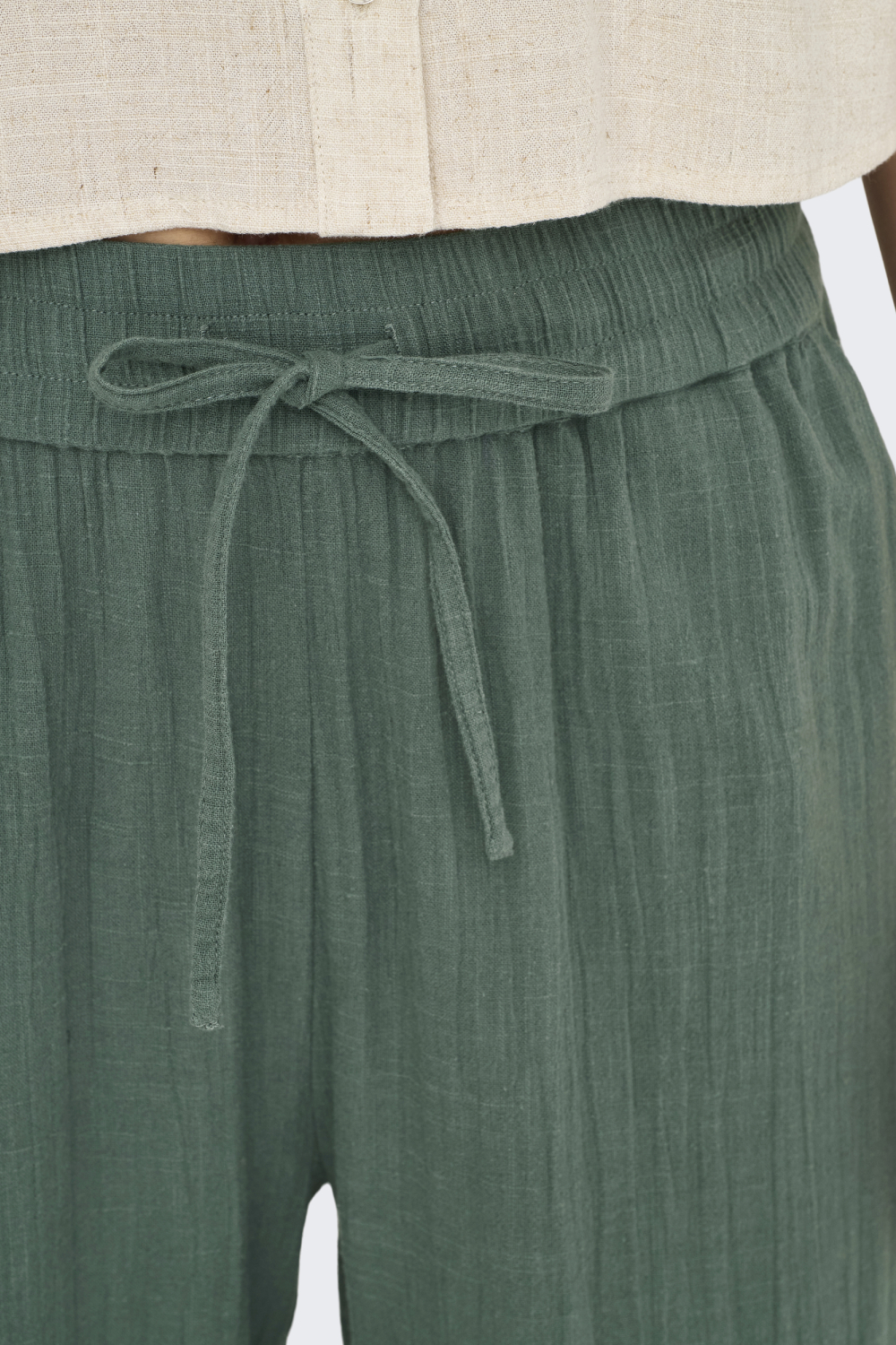 Deze comfortabele broek van Only in de kleur Balsam Green is een must voor je casual garderobe. Met zijn oversized pasvorm en elastische boord biedt hij de perfecte combinatie van stijl en gemak. De broek is gemaakt van 100% katoen, wat zorgt voor een zachte touch en ademend vermogen. De subtiele textuur en normale lengte maken deze broek tot een veelzijdig kledingstuk dat je moeiteloos kunt dragen voor verschillende gelegenheden. De steekzakken voegen een praktische toets toe, waardoor je ook je essentials makkelijk bij de hand hebt. Dankzij het eenvoudige maar elegante design kun je deze broek gemakkelijk combineren met diverse tops en schoenen. Of je nu een luie dag thuis hebt, boodschappen gaat doen, of een relaxte lunch gepland hebt, met deze broek zit je altijd goed. Het regular waist ontwerp zorgt ervoor dat de broek netjes op zijn plaats blijft, terwijl je je vrij kunt bewegen. Combineer hem met een frisse blouse voor een casual-chique look of ga voor een comfortabel T-shirt voor die ontspannen dagen. Voeg deze veelzijdige broek toe aan je basiscollectie en creëer moeiteloos diverse outfits.