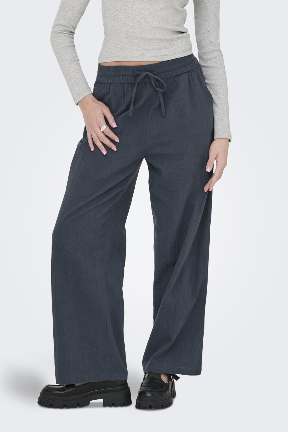 Ervaar comfort en stijl met deze Only damesbroek in de kleur Ombre Blue. Ontworpen met een wide leg pasvorm en gemaakt van 100% katoen, biedt deze broek zowel ademend comfort als een moeiteloze uitstraling. De elastische boord met een verstelbaar trekkoord zorgt voor een perfecte fit, terwijl de steekzakken praktische opbergruimte toevoegen. De Ombre Blue tint geeft de broek een verfijnde, veelzijdige uitstraling die perfect past bij verschillende gelegenheden. Of je nu een dag op kantoor doorbrengt of een ontspannen weekend hebt, deze Only broek is een ideale keuze. De casual stijl maakt het eenvoudig om te combineren met een simpele top en sneakers voor een relaxte look, of met een blouse en hakken voor een meer verfijnde outfit. Dankzij de normale taille en lengte biedt deze broek een moderne look zonder in te leveren op comfort. Voeg deze veelzijdige broek aan je garderobe toe voor een stijlvolle en comfortabele outfit.