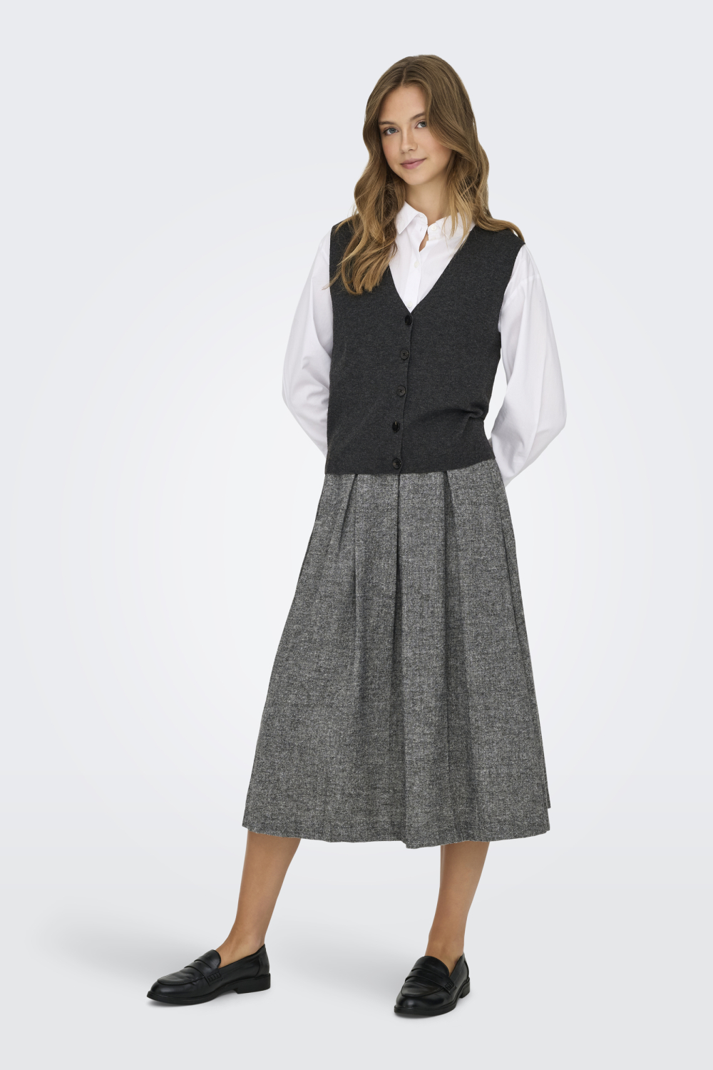 Met de mouwloze snit is het gilet perfect voor lagenlooks in het overgangsseizoen. Combineer het met een nette rok of een casual jeans voor een veelzijdig ensemble dat zich aanpast aan verschillende gelegenheden. Het zachte knitwear materiaal voelt comfortabel aan en maakt het een praktische keuze voor dagelijks gebruik. Voeg dit Only gilet toe aan je collectie voor een moeiteloos stijlvolle en verfijnde uitstraling.