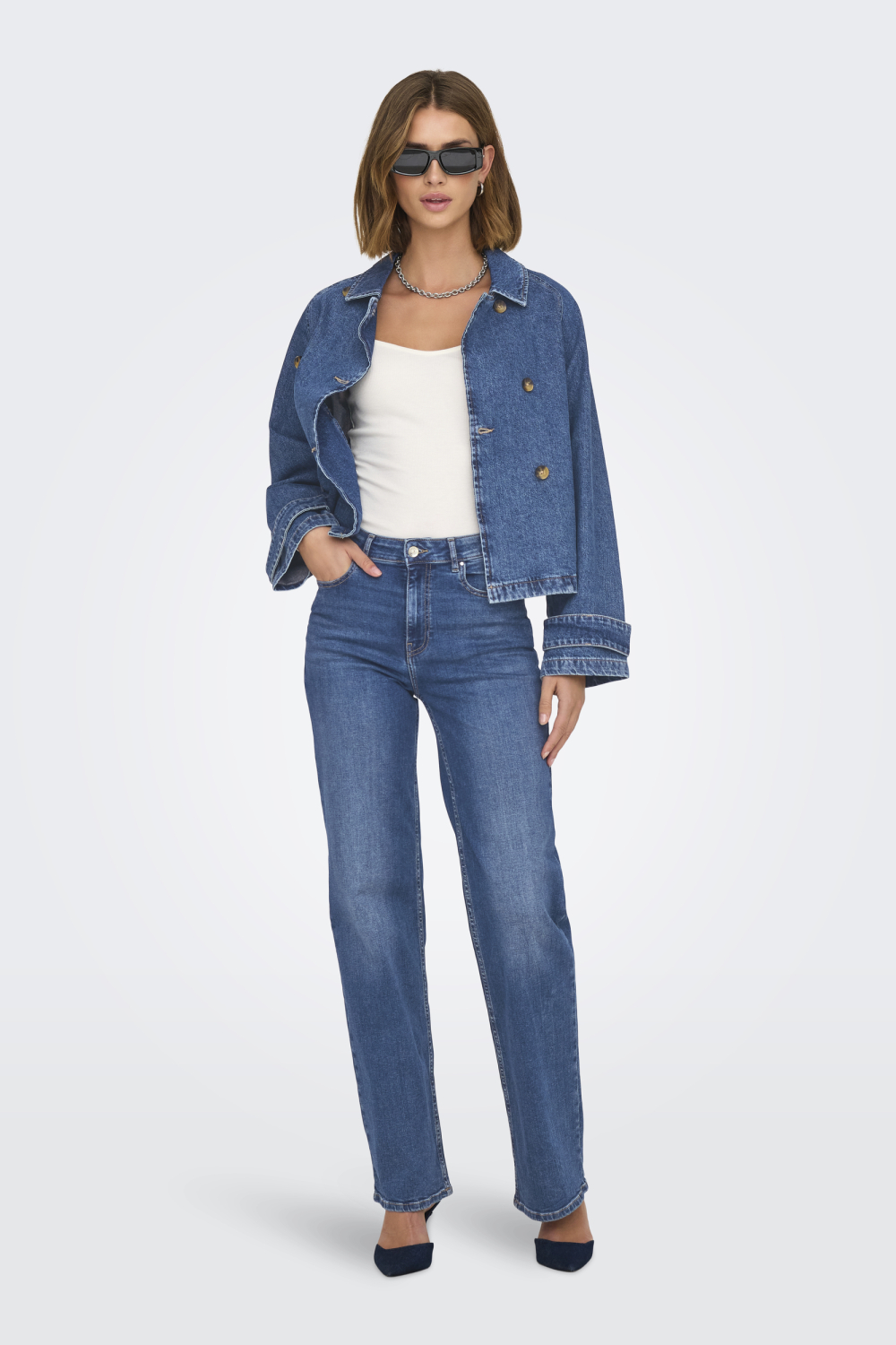 Deze denim jas van Only is een veelzijdige toevoeging aan je garderobe. Uitgevoerd in een stijlvolle bleached wash, biedt de jas een klassieke uitstraling die perfect past bij verschillende outfits. De rechte pasvorm en de puntkraag geven je een moderne look. Bovendien geven de klepzakken aan de voorkant een casual touch, terwijl de knoopsluiting zorgt voor een nette afwerking. De lange mouwen maken hem geschikt voor elk seizoen. De kortere lengte van de jas maakt het een uitstekend stuk om te combineren met zowel broeken als rokken, en de stevige katoenstof biedt comfort en duurzaamheid. Ideaal voor een dagje uit in de stad of een relaxed avondje met vrienden. De medium blue denim kleur is tijdloos en makkelijk te combineren met diverse stijlen. Dit item van Only is perfect voor wie houdt van een casual en toch modieuze uitstraling. Meer informatie: De totale lengte is 57 cm bij maat S.