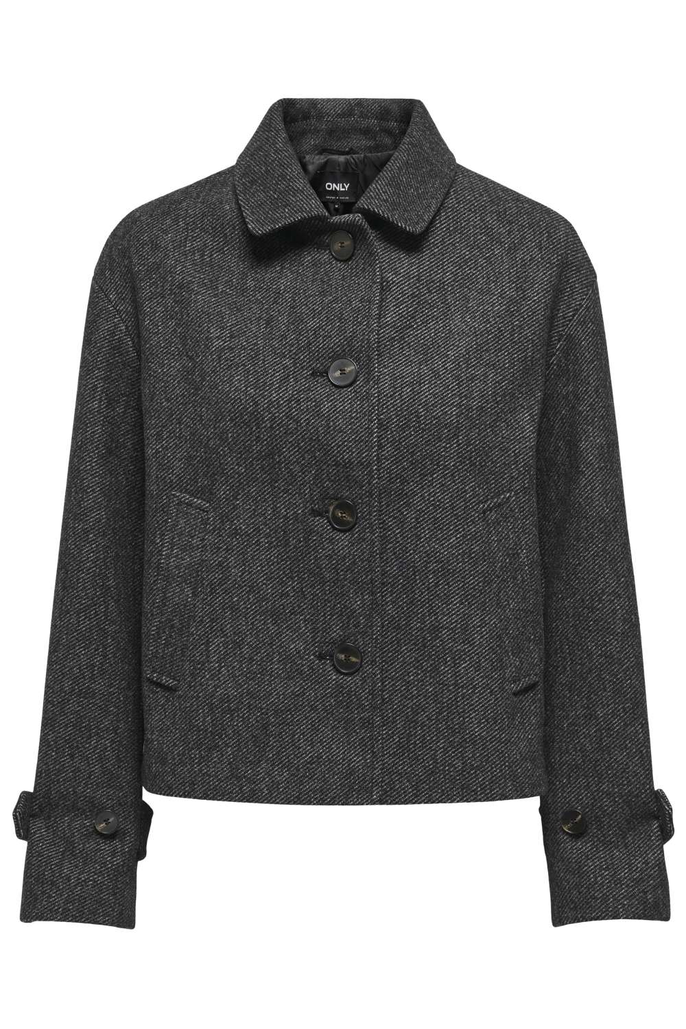 Deze casual jas van Only in dark grey melange is een stijlvolle aanvulling op je wintergarderobe. De jas heeft een regular fit en is gemaakt van 100% polyester, wat zorgt voor een warme en stevige draagervaring. De gemêleerde stof geeft een subtiel patroon dat de jas een moderne uitstraling bezorgt. Met de revers kraag en knoopsluiting creëer je een klassieke look die makkelijk te combineren is met verschillende outfits. De korte lengte van de jas maakt hem perfect voor dagelijkse activiteiten, of je nu een wandeling maakt in het park of een avondje uit plant. De lange mouwen bieden extra warmte op koude dagen, terwijl de soepele pasvorm ervoor zorgt dat je je vrij kunt bewegen. Deze jas is ideaal voor allerlei gelegenheden en voegt een vleugje elegantie toe aan je dagelijkse looks.