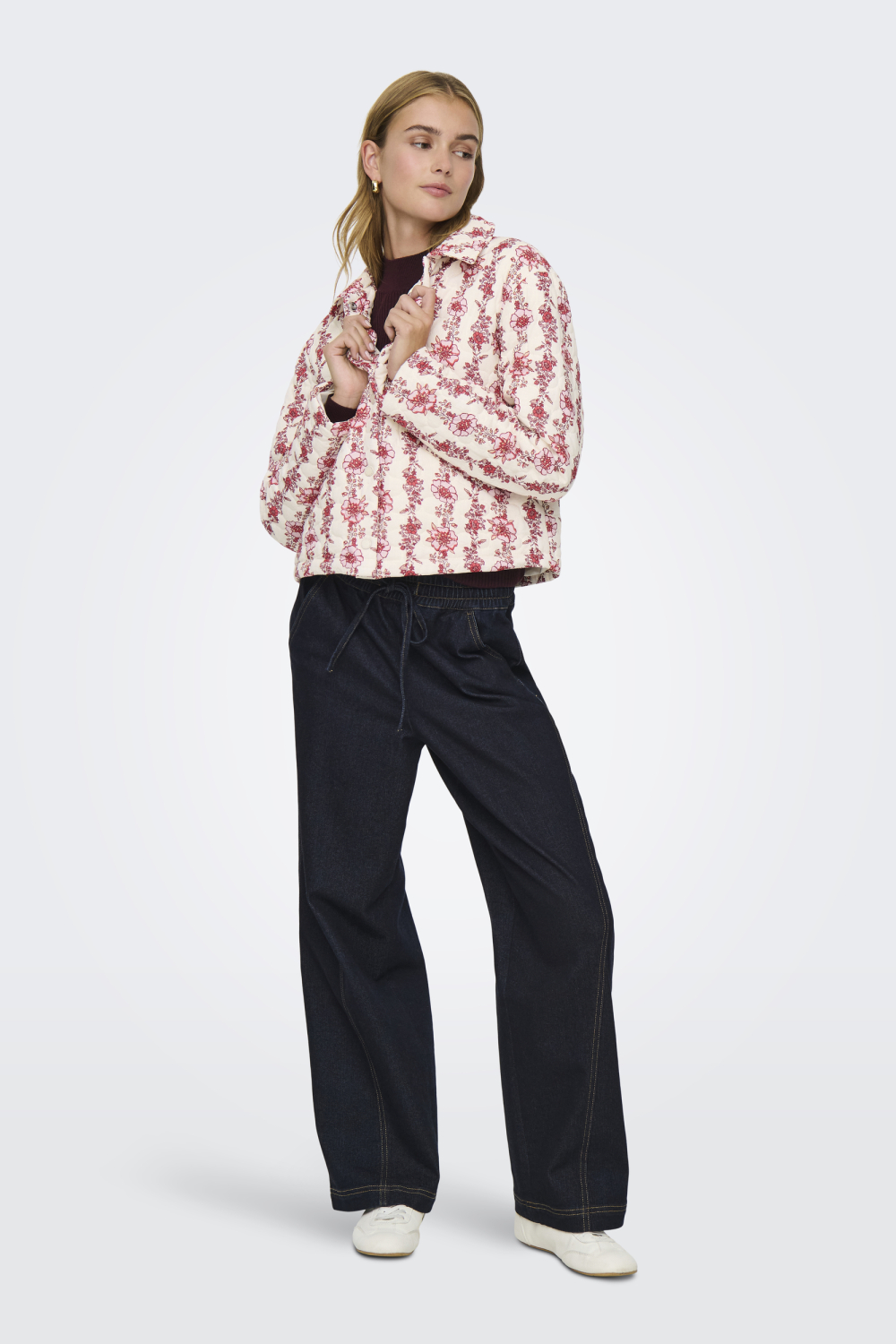 Deze elegante bloemenjas van Only is een mooie aanvulling op je voorjaarsgarderobe. Met zijn normale lengte en lange mouwen is dit een veelzijdig kledingstuk dat gemakkelijk te combineren is. De jas heeft een opvallend bloemenpatroon in rode tinten op een lichte achtergrond, wat een frisse en vrolijke uitstraling geeft. De drukknoopsluiting en puntkraag zorgen voor een casual stijl, perfect voor dagelijks gebruik. De pasvorm van deze jas is regular, waardoor je hem comfortabel kunt dragen over diverse outfits. De polyester voering biedt extra comfort en maakt de jas ideaal voor de wisselvallige lente. Je kunt hem makkelijk combineren met zowel een jeans als een jurk, waardoor hij geschikt is voor uiteenlopende gelegenheden, van een ontspannen wandeling in het park tot een lunchafspraak. De paspelzakken bieden bovendien praktische opbergruimte voor kleine essentials. Meer informatie: De totale lengte is 53 cm bij maat S.