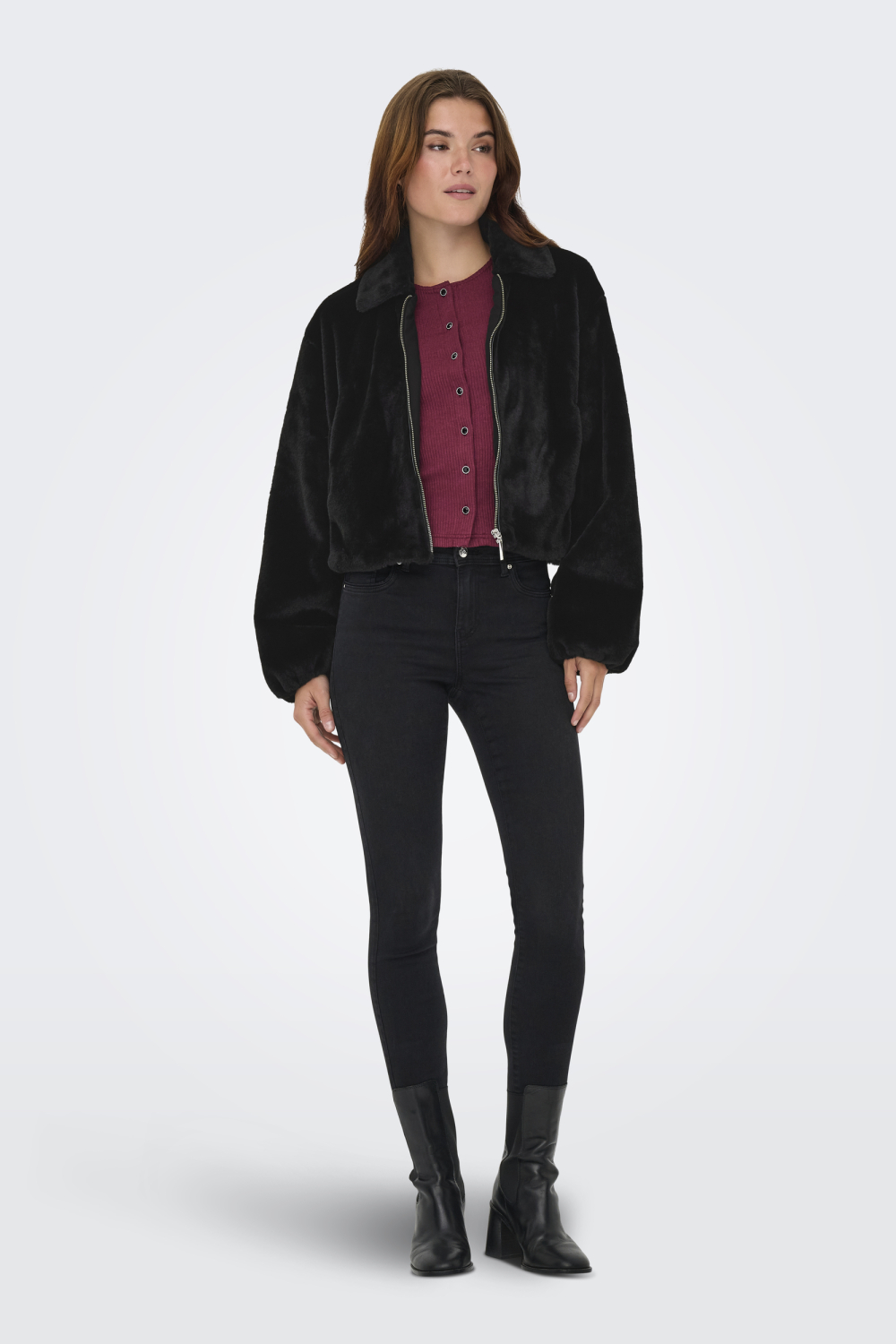 Deze zwarte jas van Only is een stijlvolle aanvulling op jouw herfstgarderobe. Gemaakt van 100% gerecycled polyester, biedt deze jas een combinatie van duurzaamheid en comfort. De teddytextuur geeft een luxueuze en warme uitstraling, perfect voor de koelere dagen. Met een regular fit en een korte lengte, is deze jas ideaal voor een casual look. De puntkraag en ritssluiting voegen een klassiek tintje toe, terwijl de praktische steekzakken je van extra gemak voorzien. Draag deze stijlvolle jas over je favoriete outfits voor een moeiteloos elegante look. Of je nu naar het werk gaat of een avondje uit plant, deze jas past perfect bij verschillende gelegenheden en stijlen. Combineer met een jeans en laarzen voor een ontspannen weekendgevoel. Met zijn lange mouwen en comfortabele pasvorm biedt de jas zowel stijl als functioneel gemak, waarmee je zelfverzekerd de deur uit gaat, ongeacht de gelegenheid. Meer informatie: De totale lengte is 49 cm bij maat S.