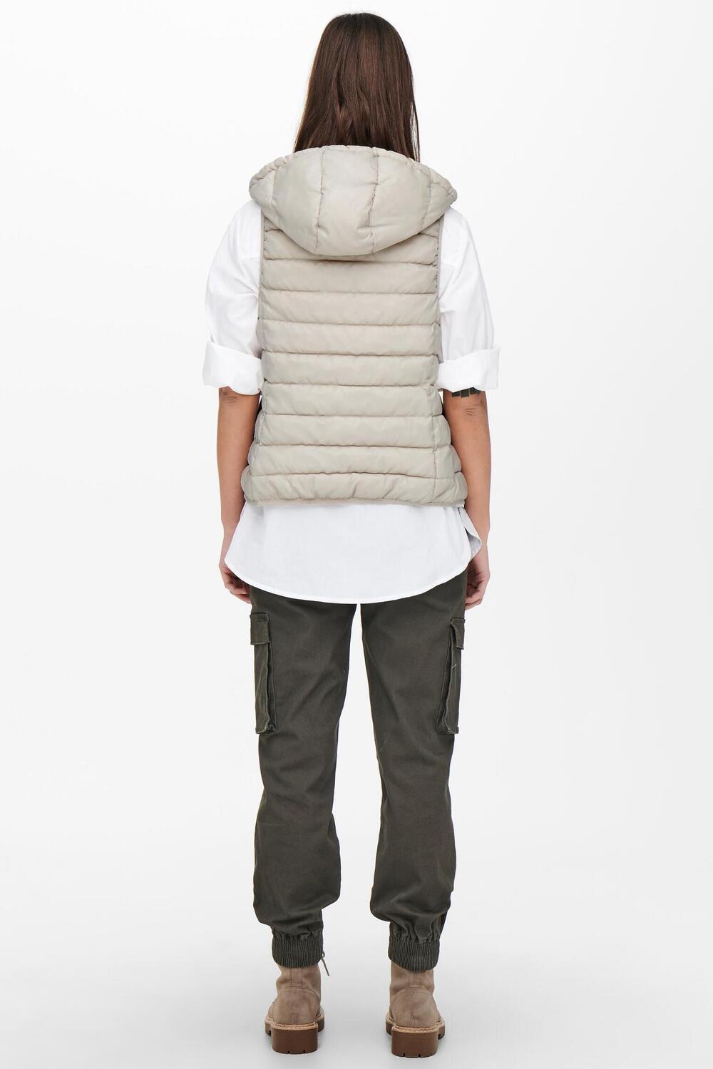 Deze casual damesjas van Only biedt jou stijl en comfort in één. Het mouwloze design maakt het perfect voor milde dagen, terwijl de capuchon je beschermt tegen onverwachte weersomstandigheden. Uitgevoerd in de subtiele kleur pumice stone, voegt deze jas een vleugje rustieke charme toe aan je outfit. De rits aan de voorkant zorgt ervoor dat je hem makkelijk kunt openen en sluiten, terwijl de steekzakken een praktische plek bieden voor je essentials. Met een regular fit en gemaakt van 100% nylon, is deze jas een ideale keuze voor zowel een ontspannen wandeling door het park als een dynamische dag in de stad. De gewatteerde voering zorgt voor extra warmte op koele momenten. Combineer deze jas met een eenvoudige blouse of een casual trui voor een moeiteloos chique uitstraling. Of je nu op pad gaat voor een dagje shoppen of een informele lunch, deze jas is je perfecte metgezel.