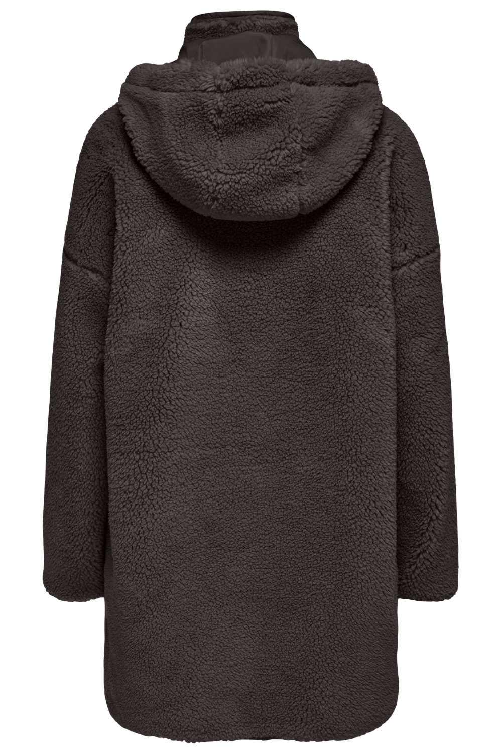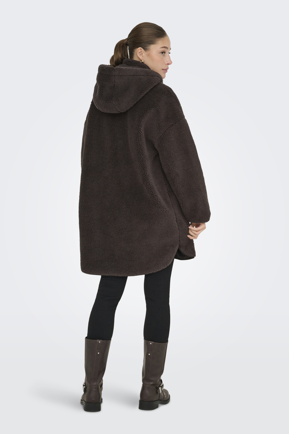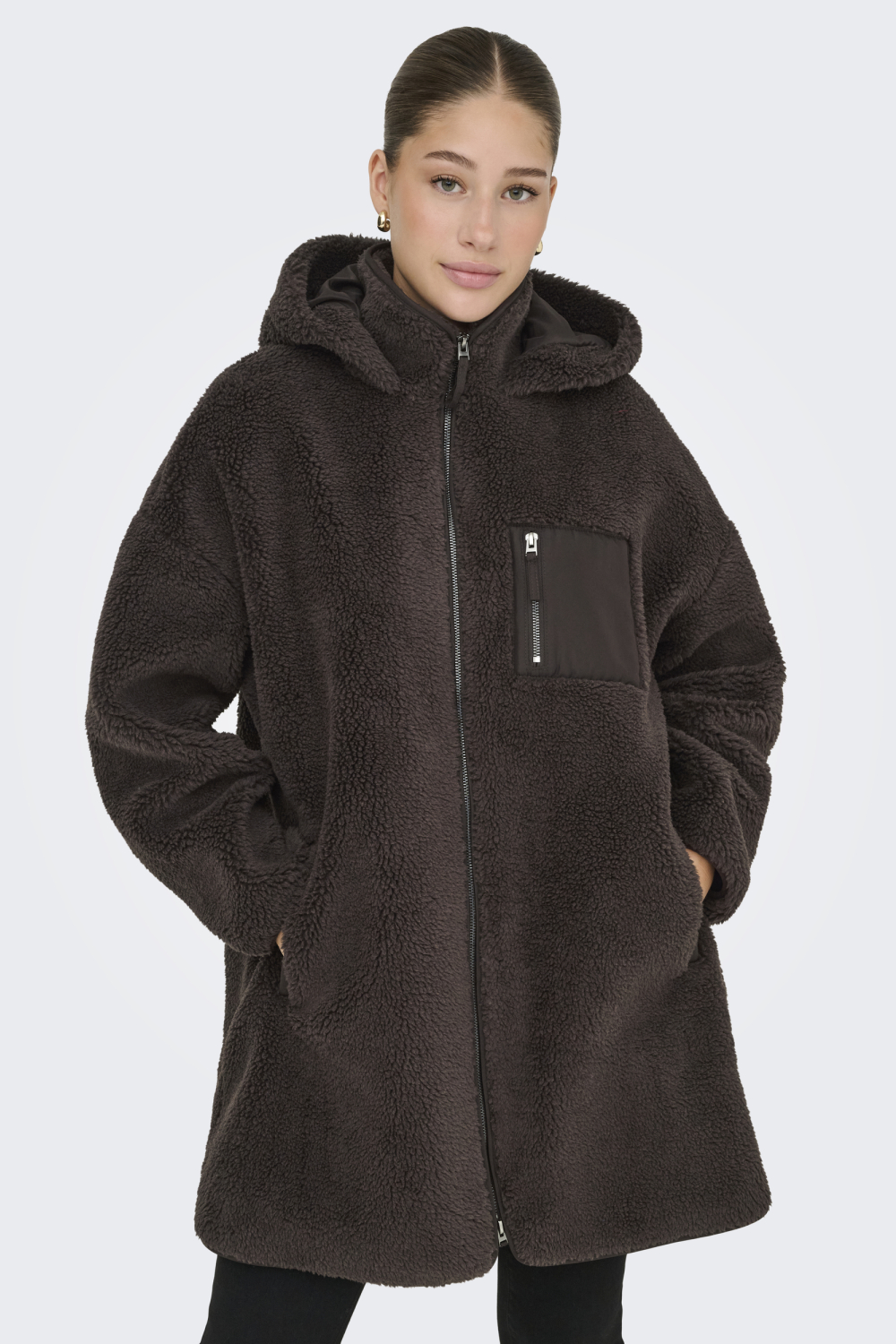 Deze oversized jas van Only in de kleur Chocolate Torte is een comfortabele en stijlvolle keuze voor de herfst. De jas is gemaakt van 100% gerecycled polyester, wat bijdraagt aan een duurzame garderobe. Het teddy patroon zorgt voor een warme en zachte uitstraling. Met een praktische capuchon en een winddichte ritssluiting ben je klaar om elke weersomstandigheid te trotseren. De halflange lengte maakt het gemakkelijk om te combineren met verschillende outfits, van casual jeans tot meer formele looks.