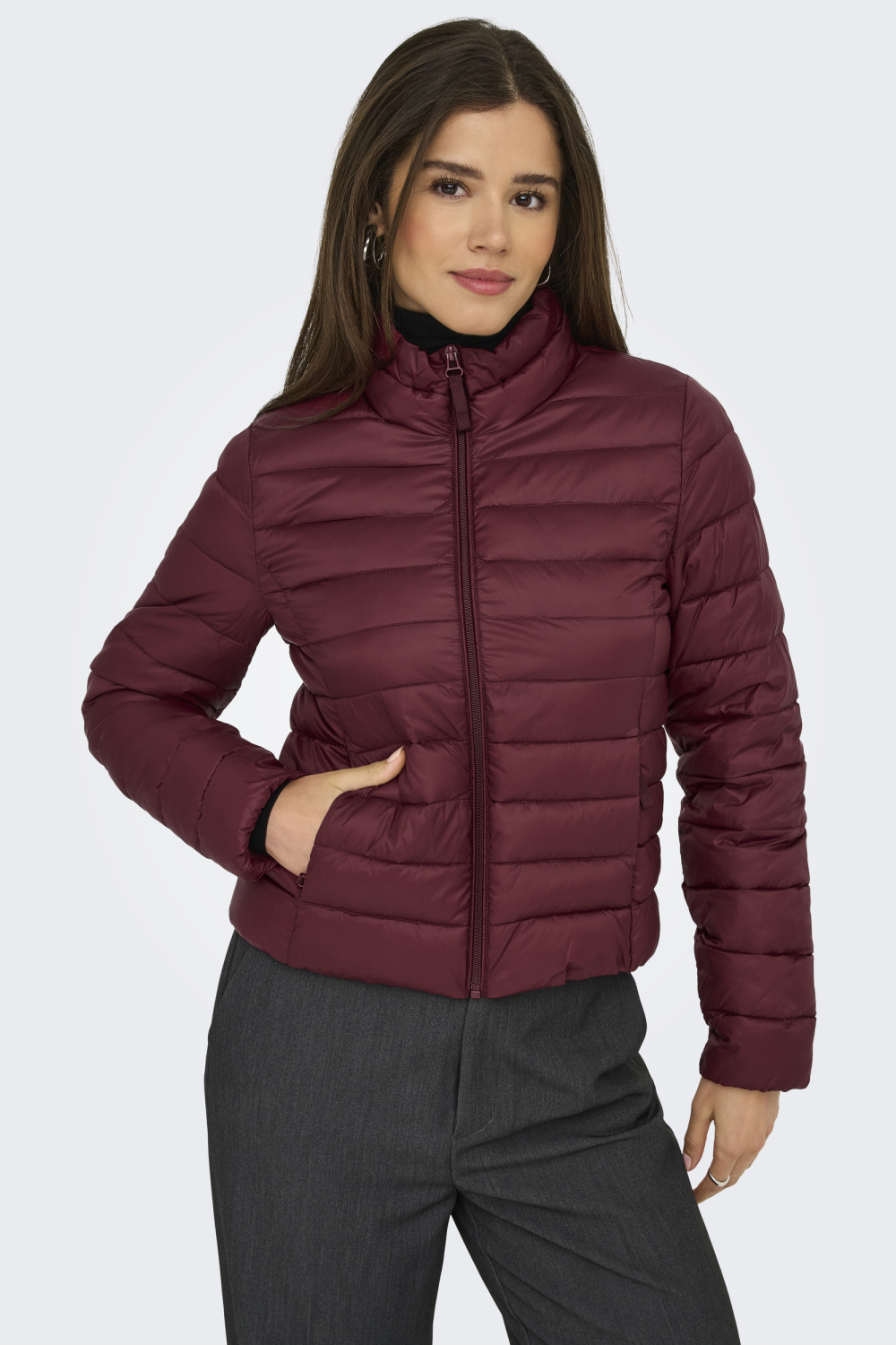 Deze cabernetkleurige damesjas van Only is een ideale toevoeging aan je herfstgarderobe. Met een regular fit pasvorm en gemaakt van 100% nylon, biedt deze jas zowel stijl als functionaliteit. De gewatteerde polyester voering zorgt voor extra warmte, terwijl de high neck het modieuze karakter benadrukt. De ritszakken aan de zijkant maken het gemakkelijk je essentials mee te nemen zonder concessies te doen aan comfort.