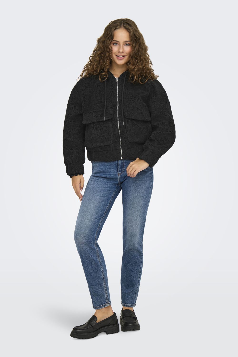 Deze zwarte teddyjas van Only is een comfortabele en stijlvolle keuze voor de winter. Met een casual stijl en regular fit biedt deze jas zowel warmte als modebewustzijn dankzij de zachte, pluchen stof van 100% polyester. De capuchon en lange mouwen houden je warm tijdens koude dagen, terwijl de praktische klepzakken zorgen voor een functionele touch. De rits aan de voorzijde maakt het gemakkelijk om de jas snel aan of uit te trekken, perfect voor die momenten waarop je onderweg bent.