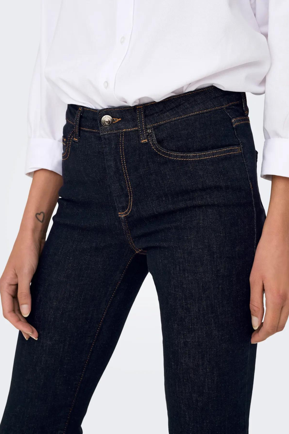 Deze stijlvolle donkere Only jeans, in flared model, is een tijdloze toevoeging aan je garderobe. Gemaakt van hoogwaardige denim, bieden deze jeans een klassieke look met een moderne twist. Het rinsewash effect geeft een strakke, donkere afwerking die eenvoudig te combineren is met zowel casual als formele bovenkleding. Met de 5-pocket stijl en een knoop-/ritssluiting, zijn deze jeans zowel praktisch als modieus. De normale lengte en regular waist zorgen ervoor dat deze jeans geschikt zijn voor vele gelegenheden. Of je nu een dag op kantoor doorbrengt of een avondje uit plant, je ziet er moeiteloos goed uit. Het donkere denim is perfect te combineren met lichte en donkere tops, en dankzij de flared pasvorm voeg je een vleugje elegantie toe aan je look. Kies voor comfort en stijl met deze veelzijdige jeans van Only.