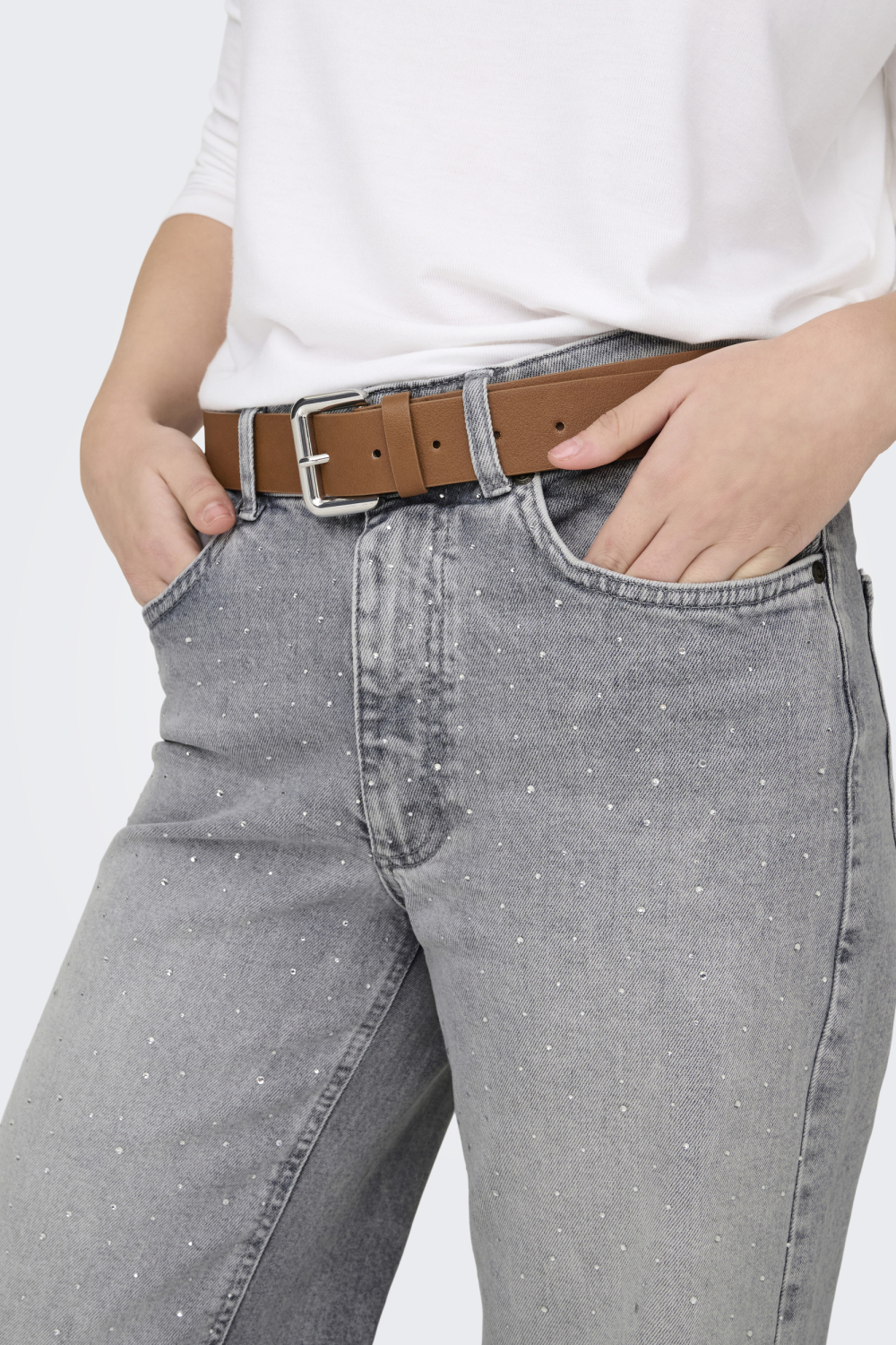 Deze elegante jeans van Only is een perfecte keuze voor jouw garderobe. Met een stonewash effect en een subtiele studsversiering, biedt deze denim een moderne twist aan een klassiek ontwerp. De jeans heeft een high waist en een comfortabele wide leg pasvorm, wat zorgt voor een flatterend silhouet. Uitstekend voor alledaagse gelegenheden, deze jeans combineert moeiteloos stijl en comfort. Gemaakt van 79% katoen, 20% gerecycled katoen en 1% elastan, voelt de stof zacht aan en heeft het een duurzame constructie. De medium grijze kleur maakt het een veelzijdig stuk dat gemakkelijk te combineren is met je favoriete tops. Of je nu naar een lunch met vrienden gaat of gewoon boodschappen doet, deze jeans geeft een verfijnde maar relaxte uitstraling aan jouw outfit. Combineer hem met een eenvoudige blouse voor een casual chic look.