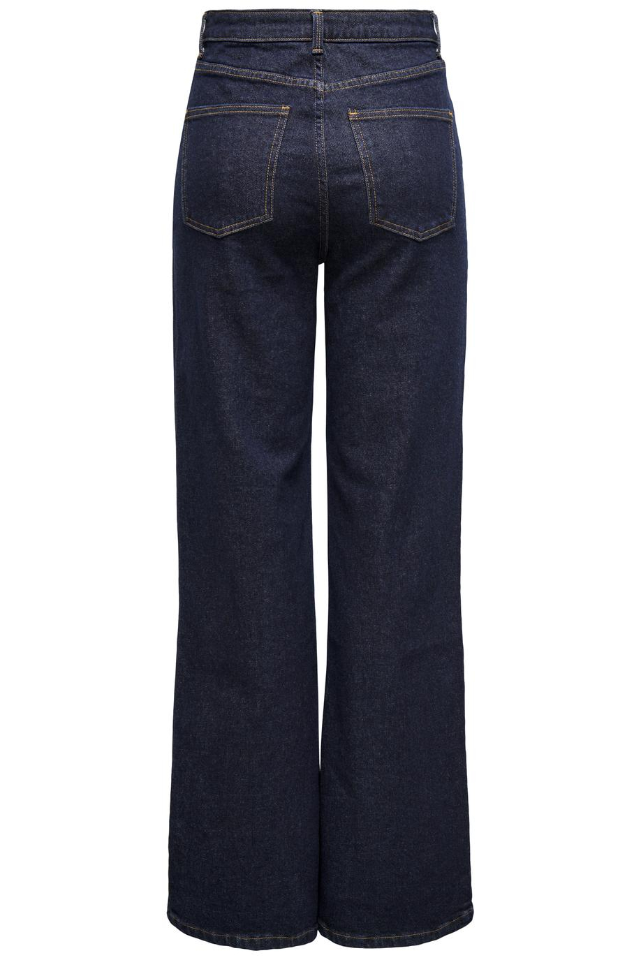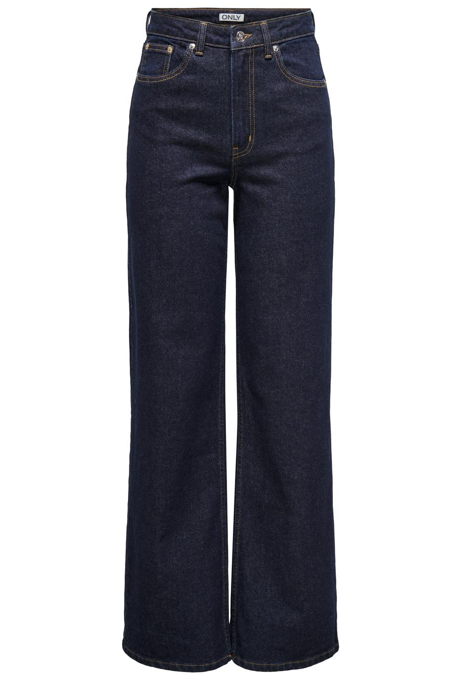 Deze donkerblauwe denim jeans van Only is een veelzijdige keuze voor elke garderobe. Met een high waist en een wide leg pasvorm, biedt deze jeans zowel comfort als een modieuze look. De 5-pocket stijl zorgt voor praktische bergruimte, terwijl de knoop- en ritssluiting de broek een klassieke uitstraling geeft. De rinsewash geeft deze jeans een verfijnde, tijdloze afwerking die makkelijk te combineren is met verschillende bovenstukken. Gemaakt van 99% katoen en 1% elastaan, draag je deze jeans met gemak de hele dag door. Of je nu een dagje de stad in gaat of naar een casual werkafspraak, deze jeans is een betrouwbare keuze. De normale lengte en de stevige denim stof maken dit kledingstuk veelzijdig en duurzaam. Combineer hem met een stijlvolle trui voor een casual look, of kies voor een nette blouse voor een iets formelere setting. De Only jeans is niet alleen stijlvol maar ook praktisch in elk seizoen.