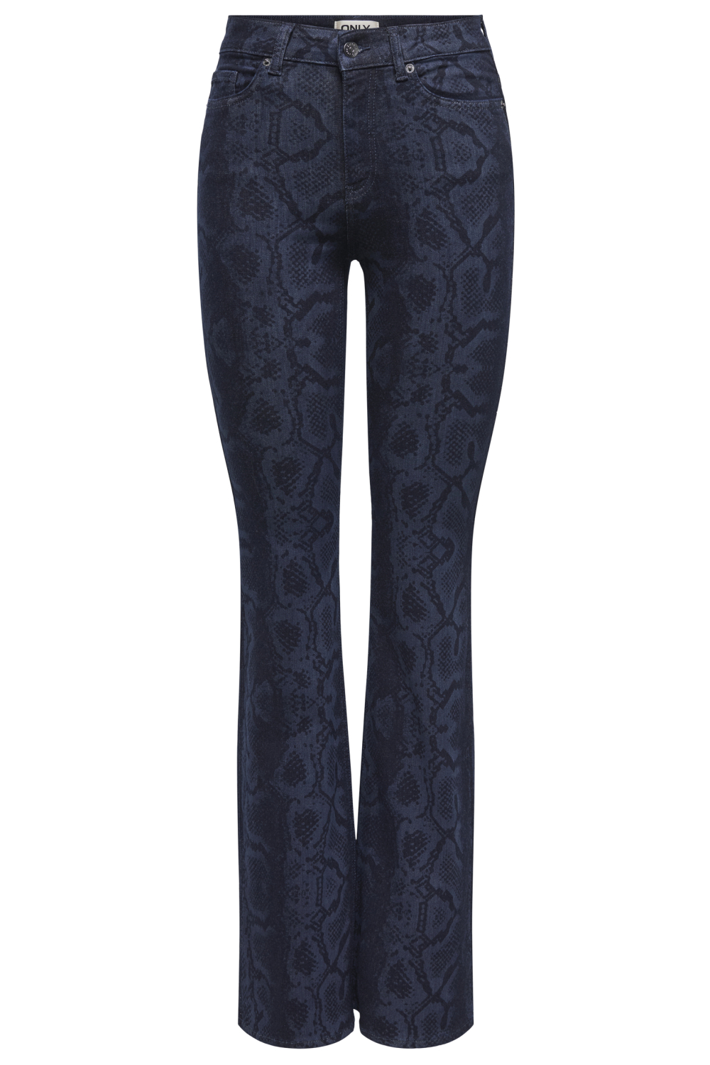 Deze stijlvolle flared jeans van Only is een bijzondere toevoeging aan je garderobe. Met een hoog getailleerd ontwerp en een subtiele rinsewash, combineer jij moeiteloos comfort met een gedurfde stijl. De jeans is gemaakt van 98% katoen en 2% elastan, waardoor hij comfortabel rond je lichaam vormt en toch voldoende bewegingsvrijheid biedt. Het unieke patroon met een dierendesign geeft een opvallende twist, ideaal voor een winterse dag waarop je toch wilt opvallen. Met een klassieke knoop- en ritssluiting is de jeans niet alleen praktisch, maar ook eenvoudig te combineren met verschillende outfits. Draag hem met een verzorgde blouse voor een casual chique look op kantoor, of combineer met een oversized trui voor een relaxte dag in de stad. Door de normale lengte past hij perfect bij je favoriete schoenen, van stoere laarzen tot elegante hakken. Deze jeans is een veelzijdige keuze voor elke gelegenheid en zorgt ervoor dat je er altijd stijlvol uitziet.