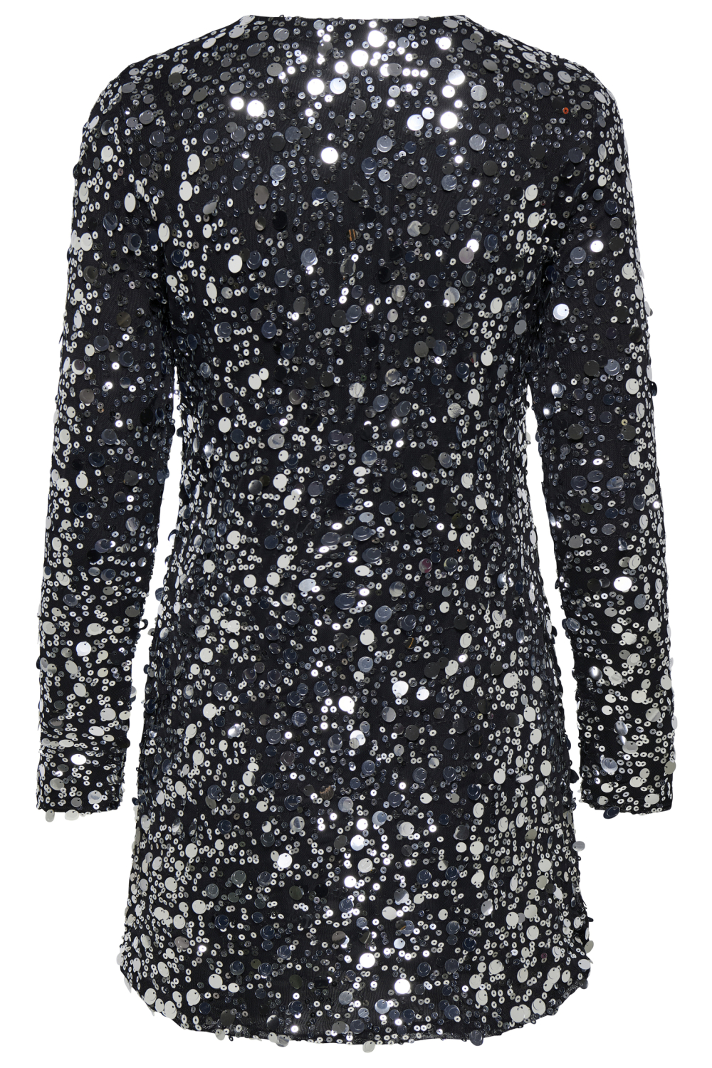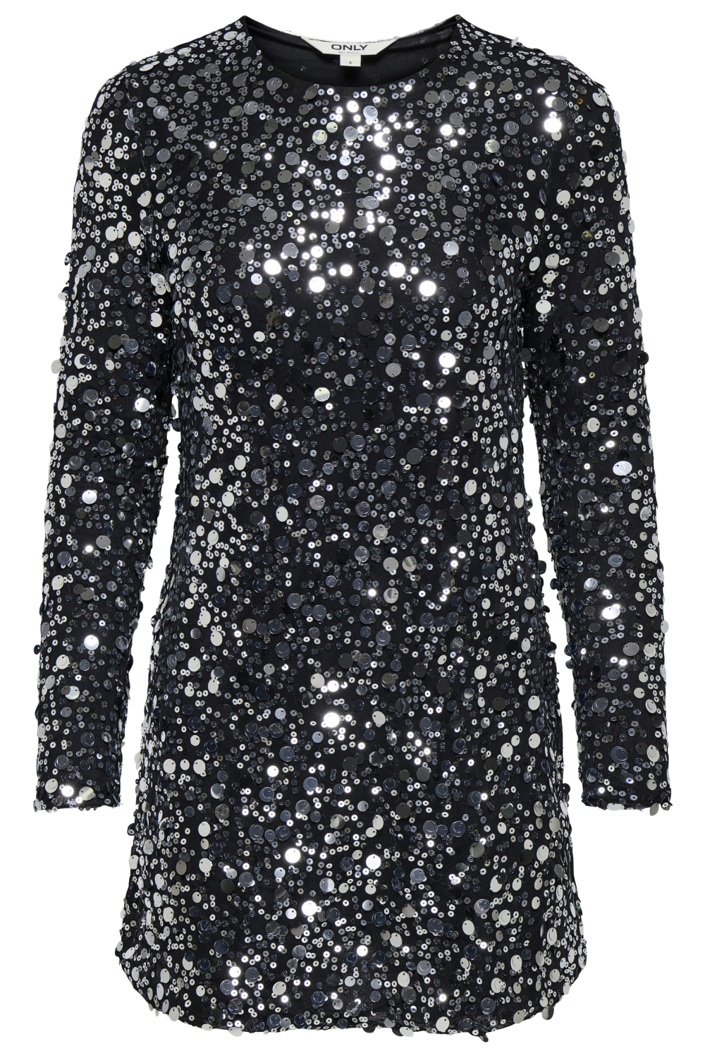 Deze glinsterende jurk van Only is een schitterende keuze voor elke feestelijke gelegenheid. De jurk heeft een ronde hals en is bedekt met zilverkleurige pailletten die een sprankelend effect geven, perfect voor een avondje uit. Met een regular fit pasvorm en lange mouwen biedt deze jurk niet alleen een vleugje glamour, maar ook comfort dankzij de hoogwaardige mix van polyester en elastaan.