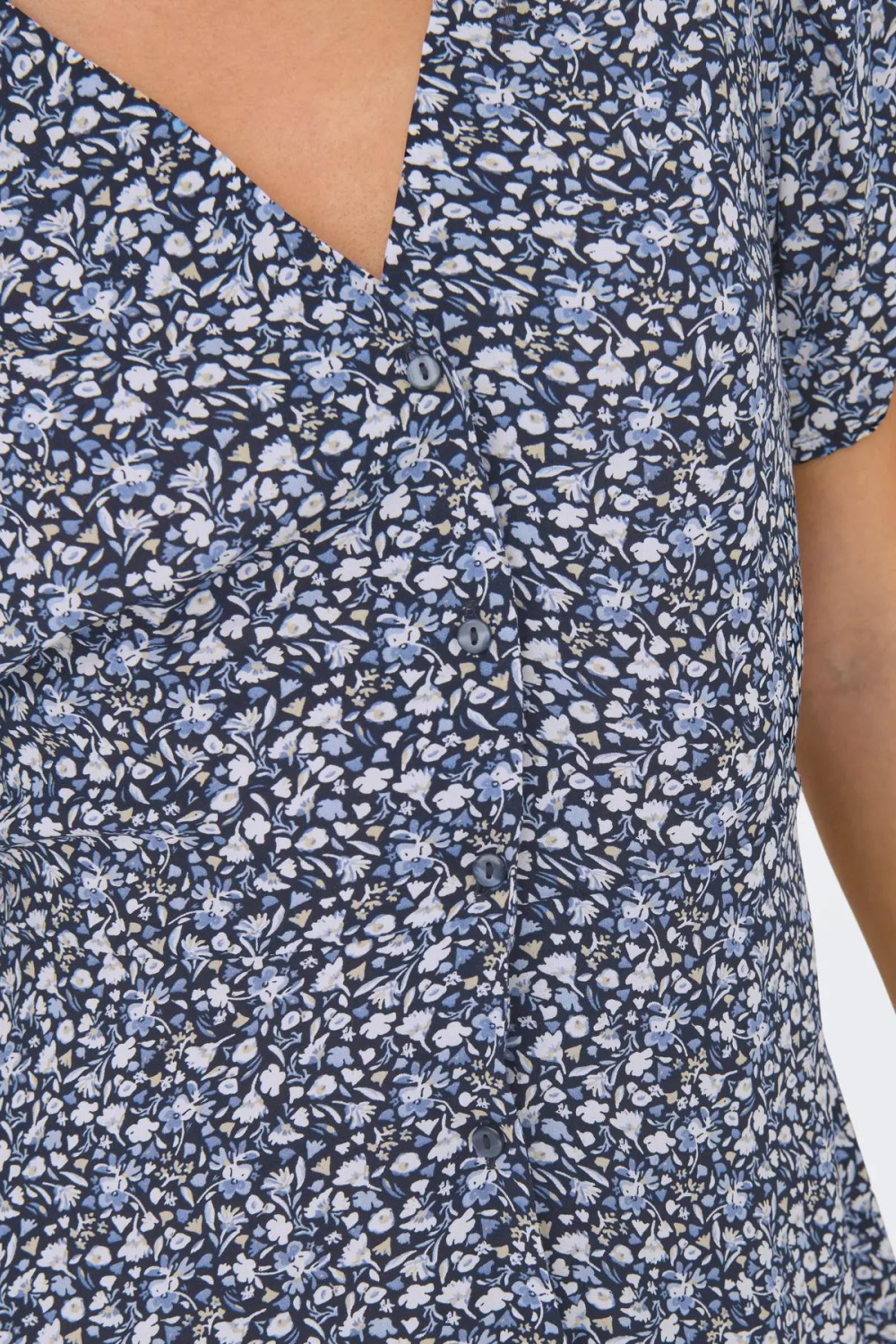 Deze stijlvolle bloemenjurk van Only is een elegante toevoeging aan je zomercollectie. De jurk heeft een verfijnde V-halslijn en een subtiele knoopsluiting, wat een klassieke uitstraling geeft. De bloemenprint in blauwe tinten voegt een fris en modieus element toe aan de outfit. Gemaakt van 100% Viscose Lenzing Ecovero, biedt de stof een lichte en comfortabele pasvorm die ideaal is voor warme dagen. Met zijn korte mouwen en een luchtige, regelmatige snit is deze jurk perfect voor een ontspannen dag in de zon. Of je nu een tuinfeest bijwoont of een casual dagje uit plant, deze Only jurk is een veelzijdige keuze. De kortere lengte van de rok zorgt voor een speelse look die prachtig staat met een paar sandalen of sneakers. Dankzij het duurzame materiaal is deze jurk niet alleen een modieuze optie, maar ook een bewuste keuze voor een ecovriendelijke garderobe. Voeg een paar accessoires toe voor extra flair, en je bent klaar voor elke zomerse gelegenheid. Meer informatie: De totale lengte is 87 cm bij maat S.